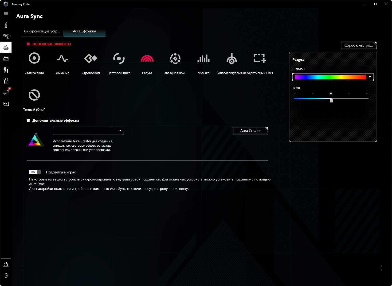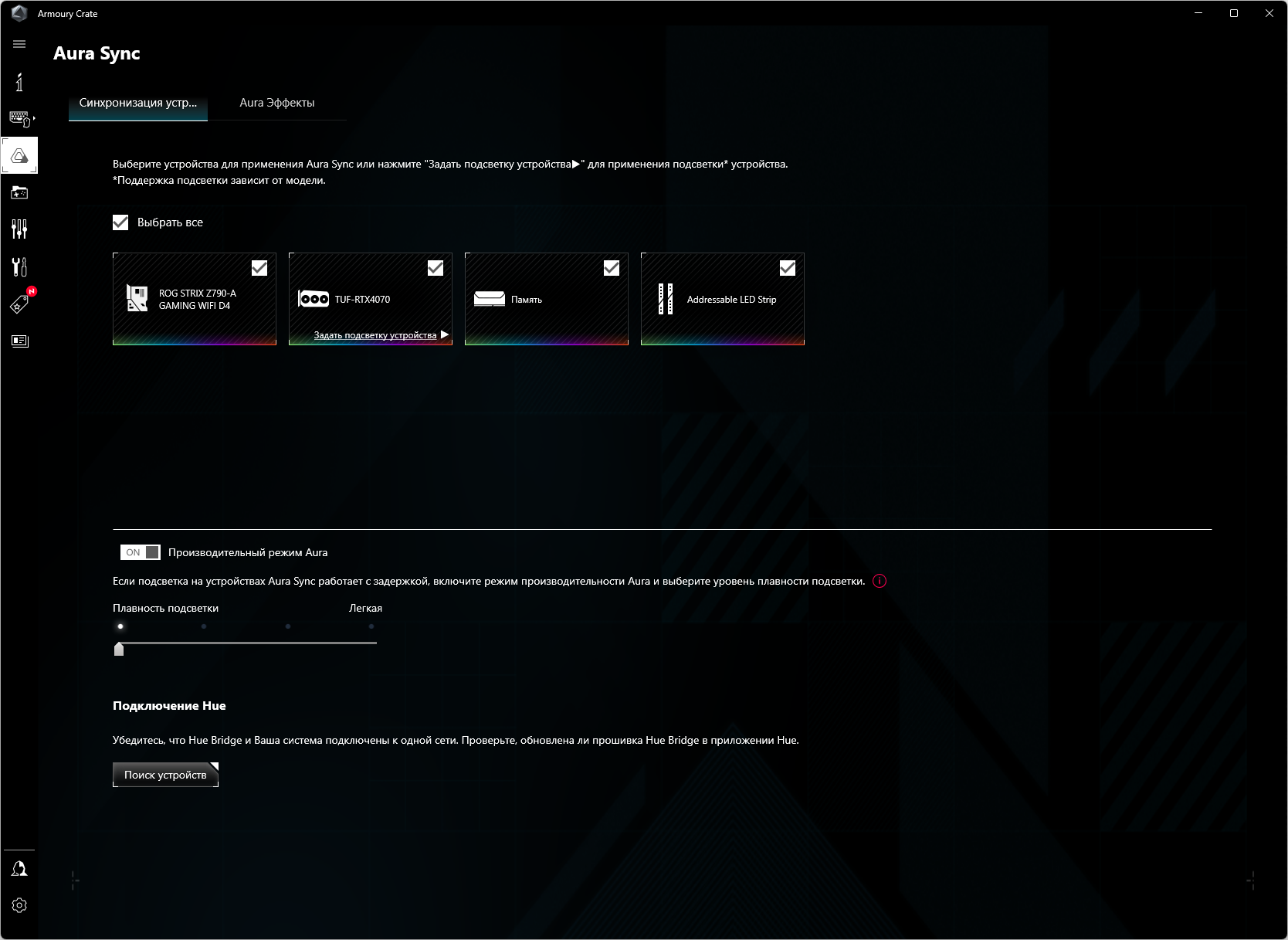 Управление подсветкой традиционно у Asus возложено на контроллер Aura.