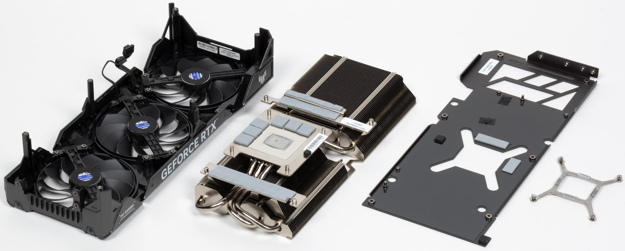 Микросхемы памяти охлаждаются с помощью этого же огромного теплосъемника (через термопрокладки), а для преобразователей питания VRM имеются отдельные небольшие подошвы на том же радиаторе.