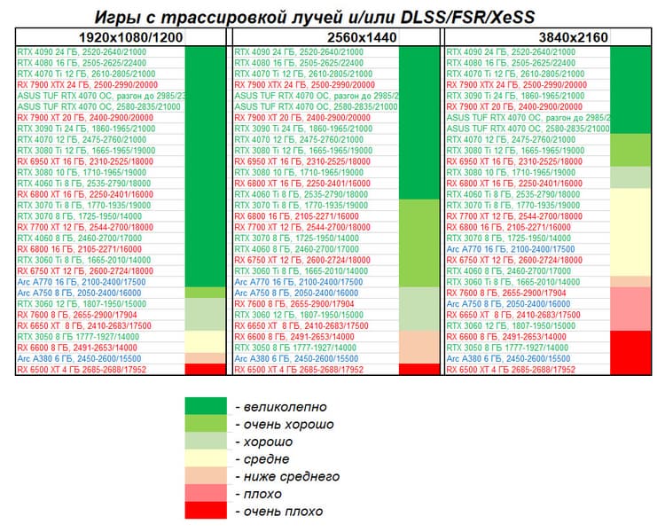 - Вариант рейтинга iXBT.com с включением RT/DLSS/FSR/XeSS