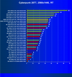 | 16 | RX 7700 XT 12 ГБ, 2544—2700/18000 | 597 | 103 | 58 000 |