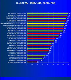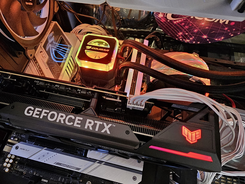 Более драматичное падение FPS от включения RT в играх, которое немного сгладило включение технологии масштабирования FSR, привело к тому, что GeForce RTX 4070 в целом и карта Asus в частности вышли на первые позиции. А более дорогой и производительный GeForce RTX 3080 Ti отстал из-за отсутствия поддержки DLSS 3, которой обладают карты семейства GeForce RTX 40 (в наших тестах уже есть несколько игр с поддержкой DLSS 3). Более того, карта Asus за счет фабрично повышенных частот работы смогла догнать более дорогую модель AMD — Radeon RX 7900 XT.