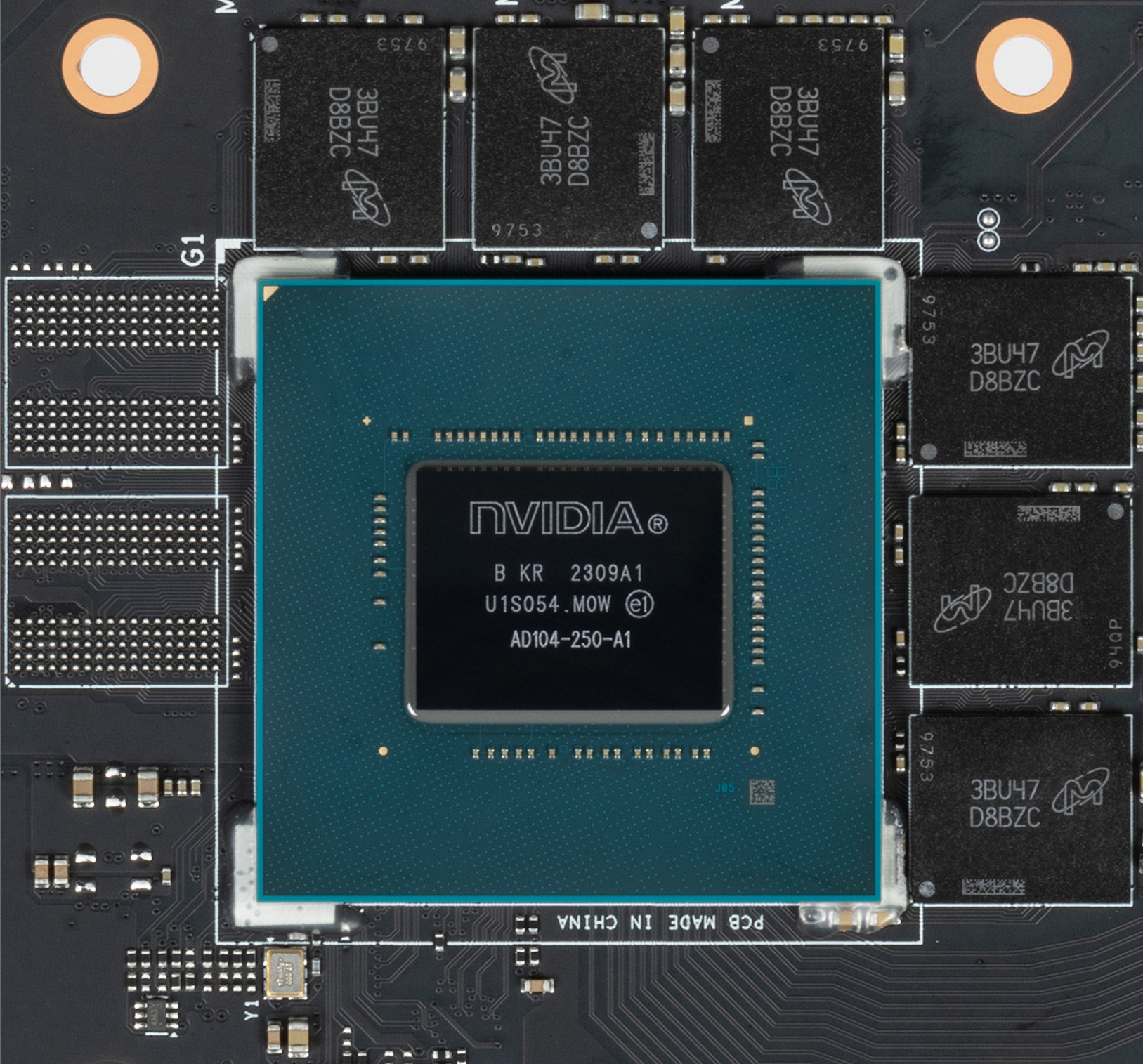 Карта имеет 12 ГБ памяти GDDR6X SDRAM, размещенной в 6 микросхемах по 16 Гбит на лицевой стороне PCB. Микросхемы памяти Micron (MT61K512M32KPA-21/D8BZC) рассчитаны на номинальную частоту работы в 2625 (21000) МГц.