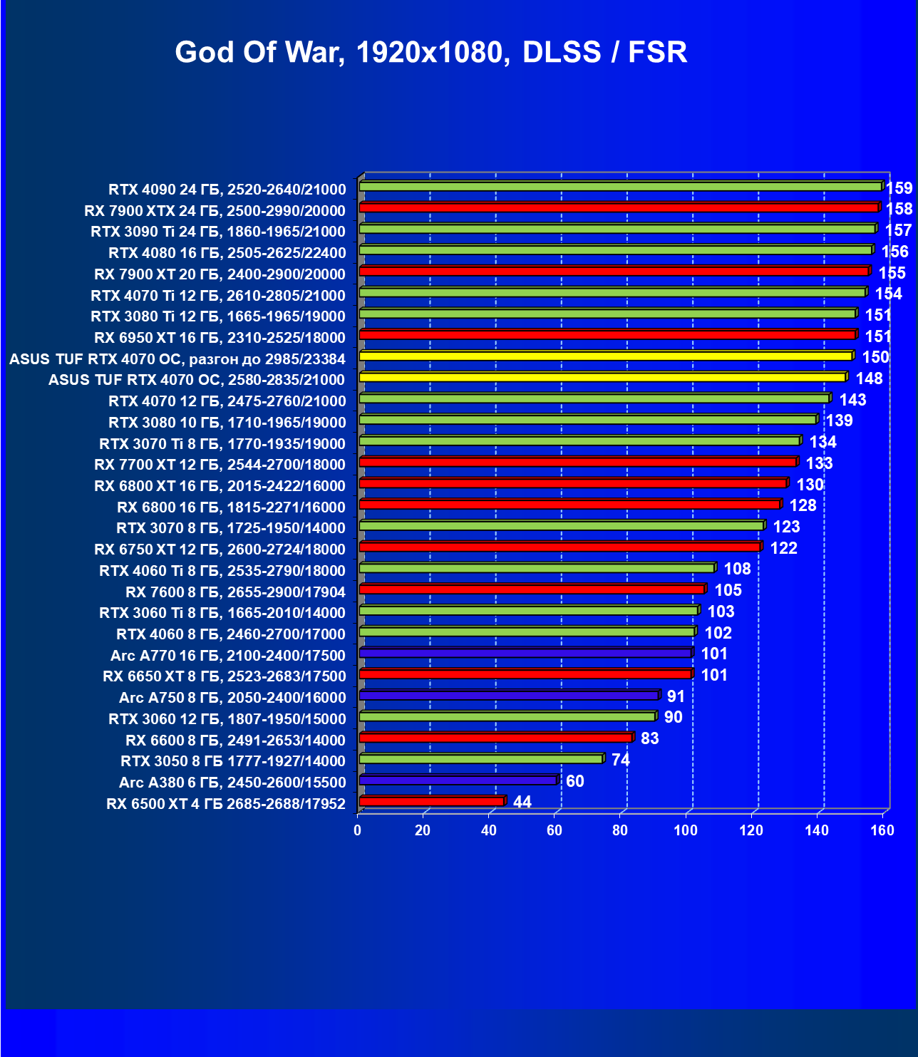 | 10 | Asus TUF RTX 4070 OC, разгон до 2985/23384 | 136 | 928 | 68 000 |