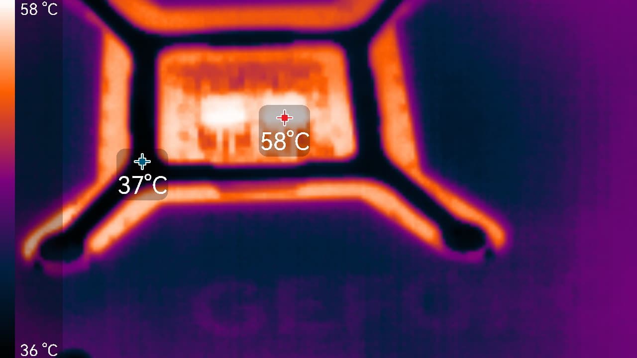 Максимальный нагрев наблюдался в центральной части PCB.
