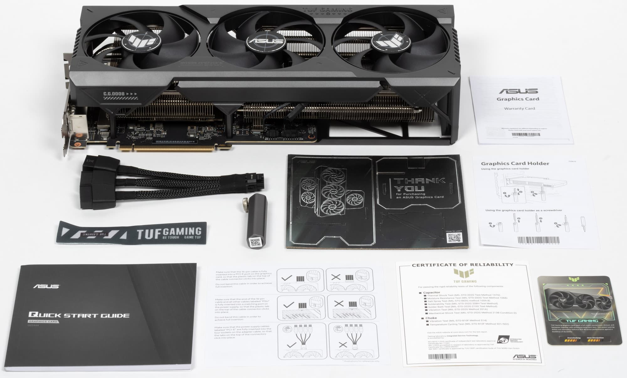 В комплекте поставки кроме традиционного краткого руководства пользователя также имеются адаптер питания, раздвижная подставка/отвертка, фирменные стяжка и карточка клуба TUF Gaming.
