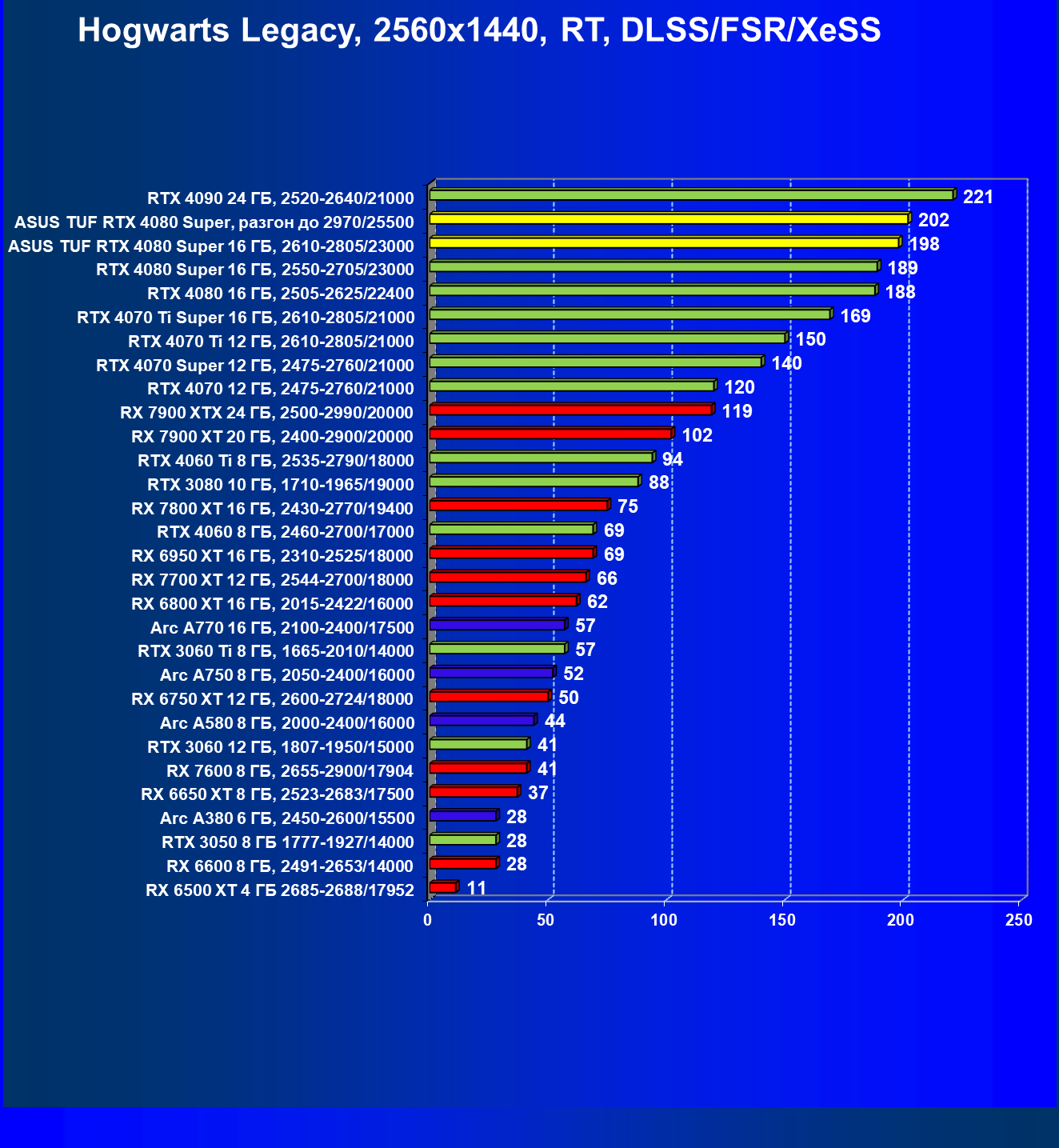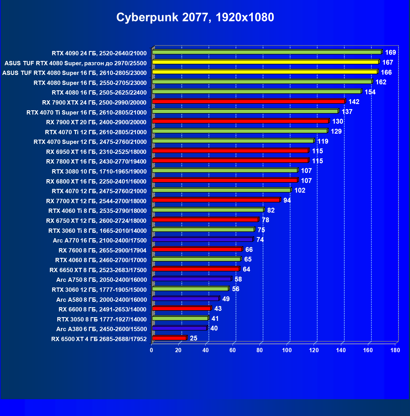 | 11 | Asus TUF RTX 4080 Super, разгон до 2970/25500 | 238 | 3218 | 135 000 |
