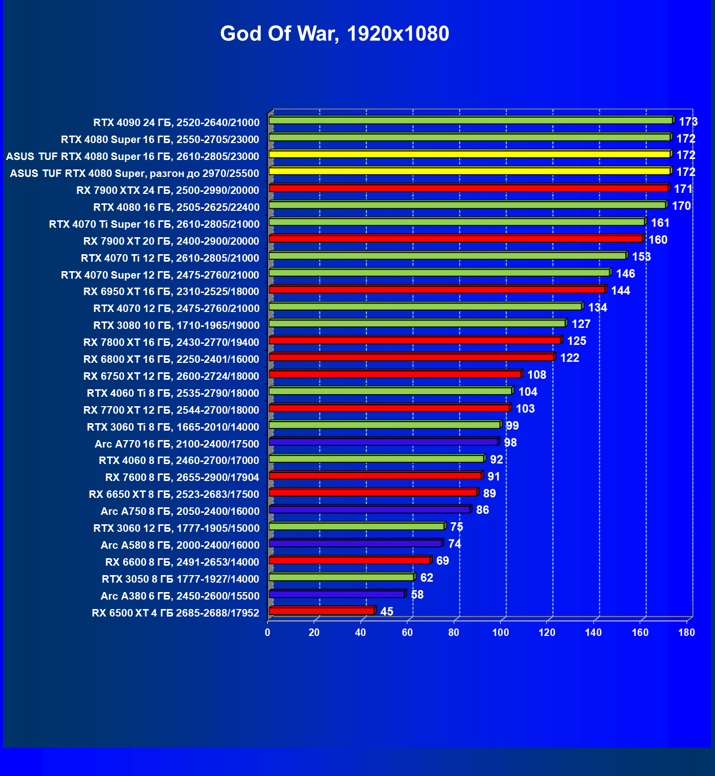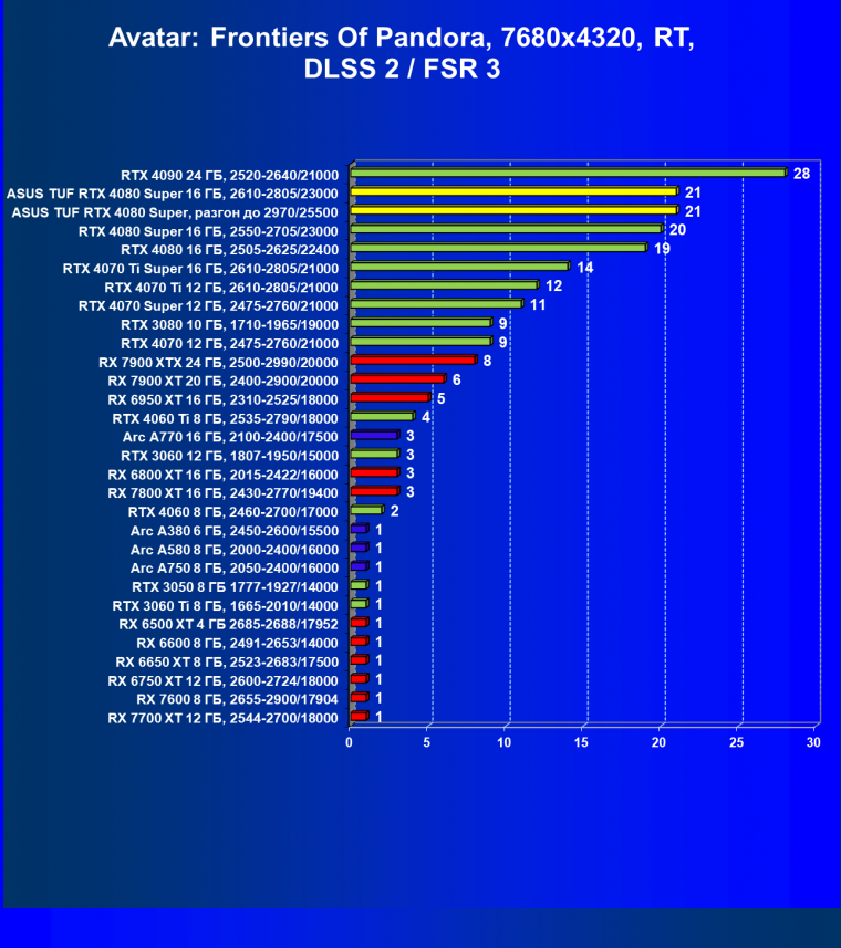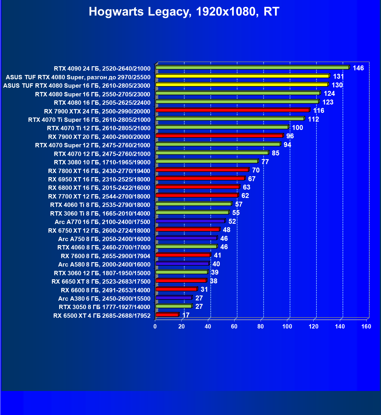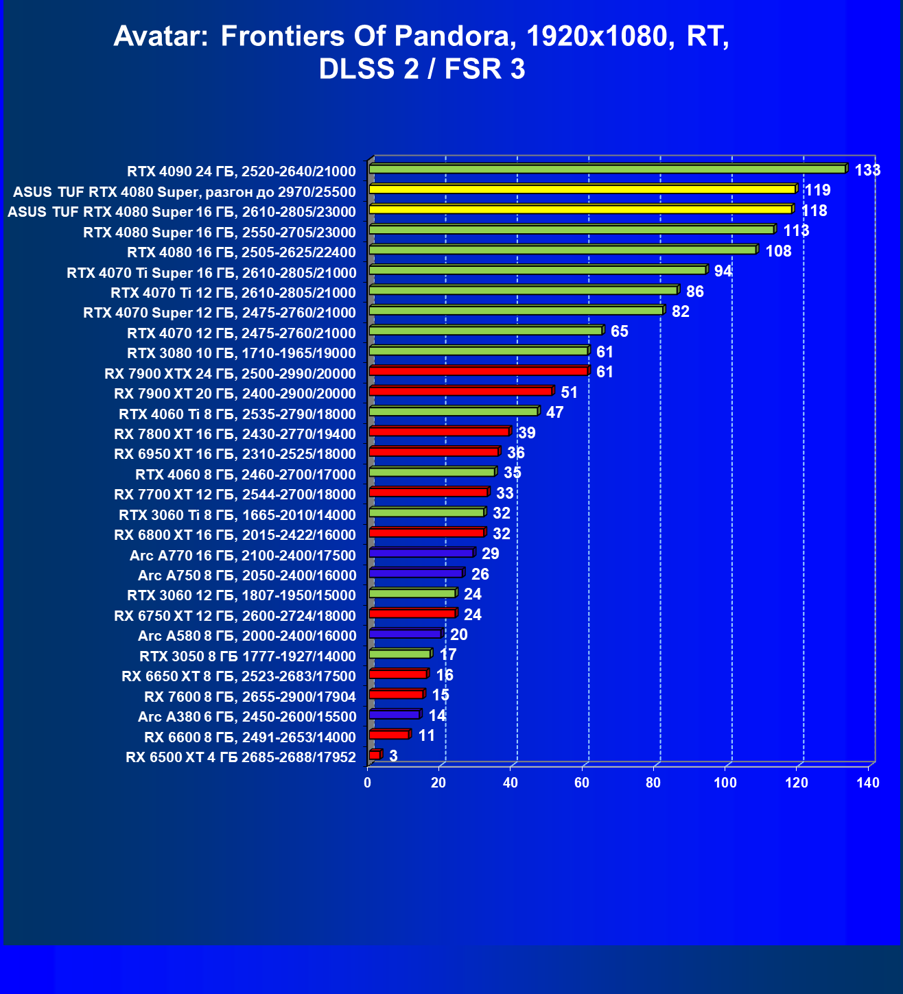 | 26 | Asus TUF RTX 4080 Super, разгон до 2970/25500 | 131 | 1771 | 135000 |