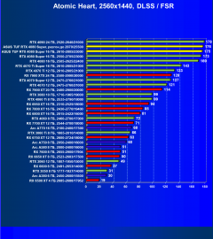 Результаты тестов со включенной аппаратной трассировкой лучей и/или DLSS/FSR/XeSS в разрешениях 1920×1080, 2560×1440 и 3840×2160