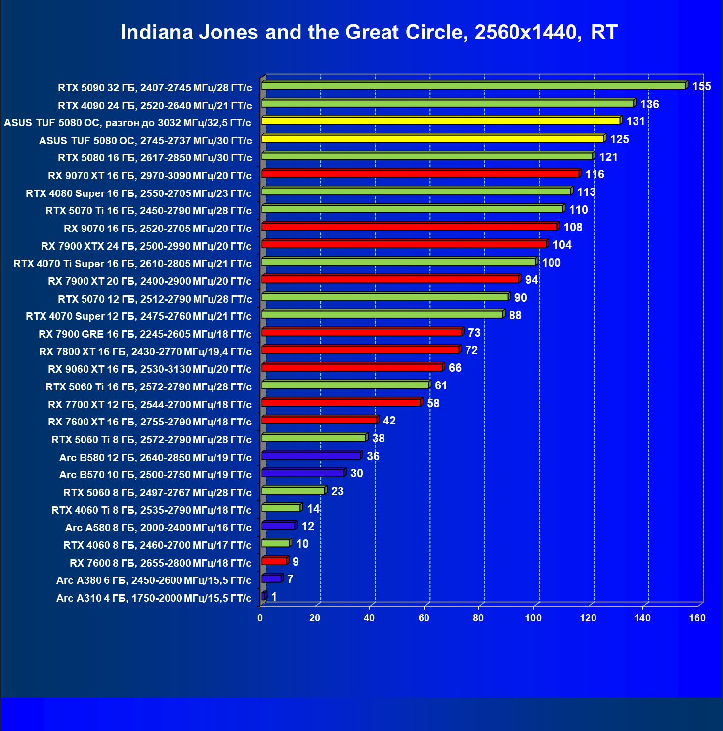 | 05 | RTX 5080 16 ГБ, 2617—2850 МГц/30 ГТ/с | 5553 | 483 | 115 000 |