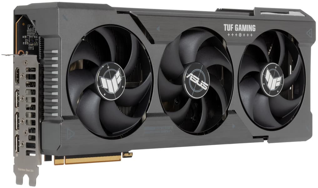 Asus TUF Gaming Radeon RX 7900 XT OC (20 ГБ) — современная весьма производительная видеокарта, имеющая достаточный объем памяти для нужд всех современных игр в разрешениях до 4K включительно. Карта Asus способна потреблять до 330 Вт. Система охлаждения мощная, высокоэффективная и умеренно тихая (а в режиме QMode даже очень тихая). Разгон ограничен уровнем 115% и приносит выигрыш до 4% в 4K. Габариты этой модели составляют 35,5 см в длину и 16 см в высоту, а по толщине видеокарта занимает 4 слота в корпусе. Набор видеовыходов стандартный: 3 DP 2.1 и 1 HDMI 2.1. Карта Asus имеет три 8-контактных разъема питания версии PCIe 2.0.