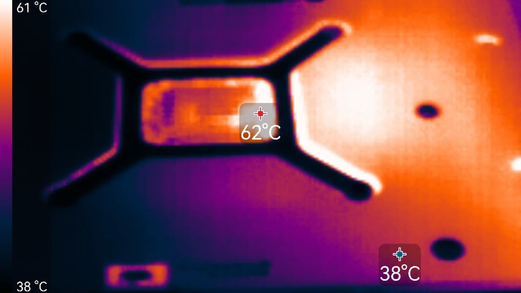 Максимальный нагрев наблюдался в центральной части PCB.