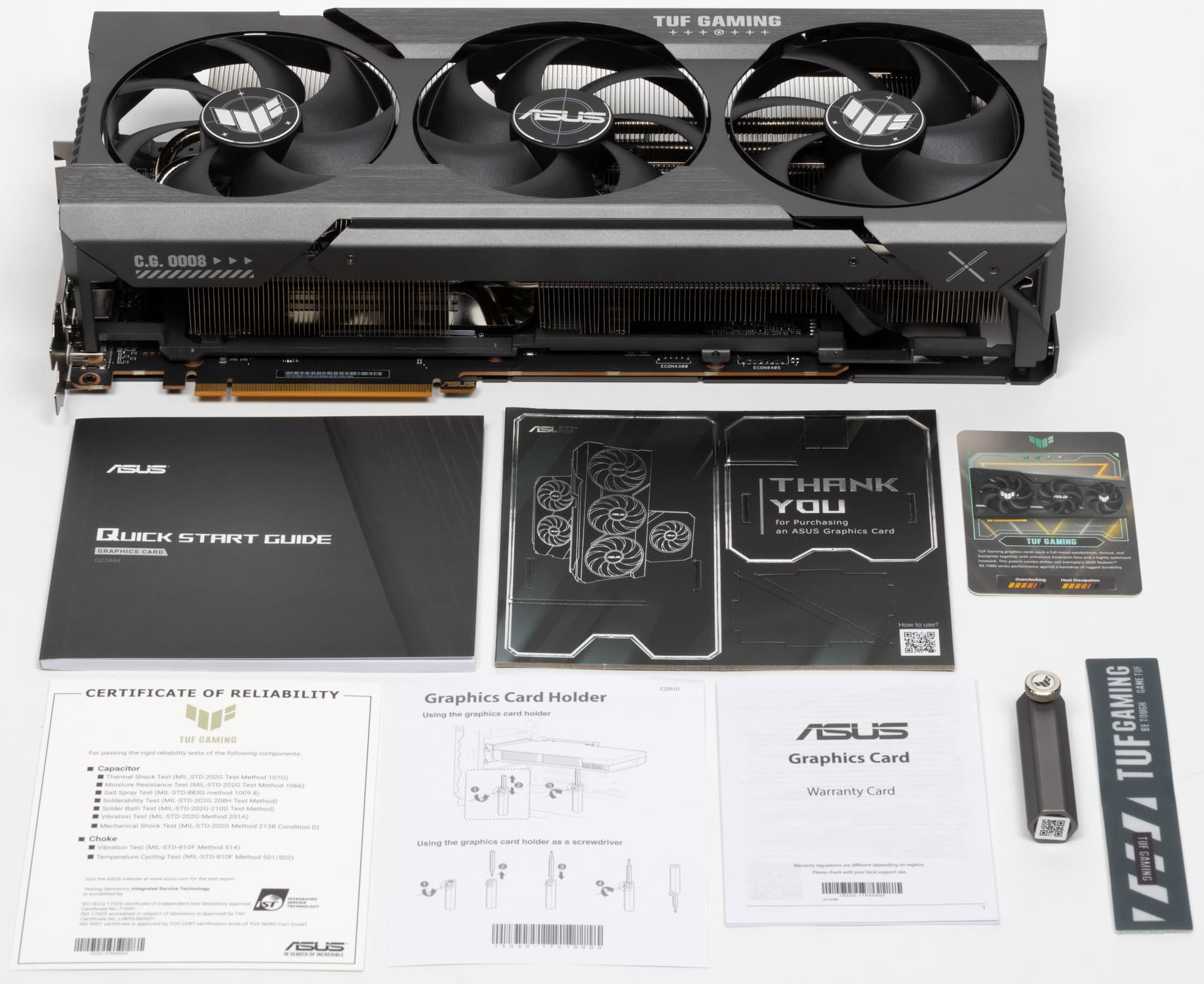В комплекте поставки кроме традиционного краткого руководства пользователя также имеются адаптер питания, раздвижная подставка/отвертка, фирменные стяжка и карточка клуба TUF Gaming.