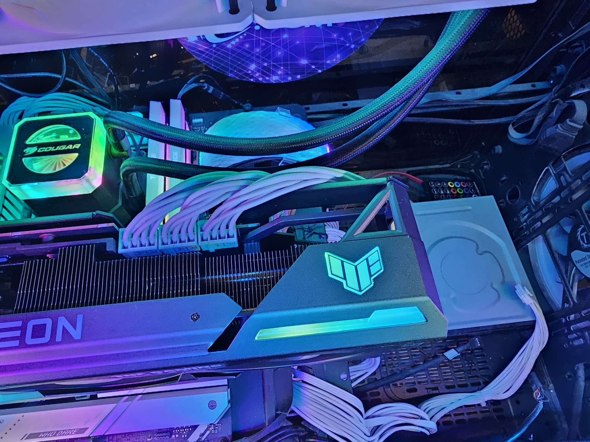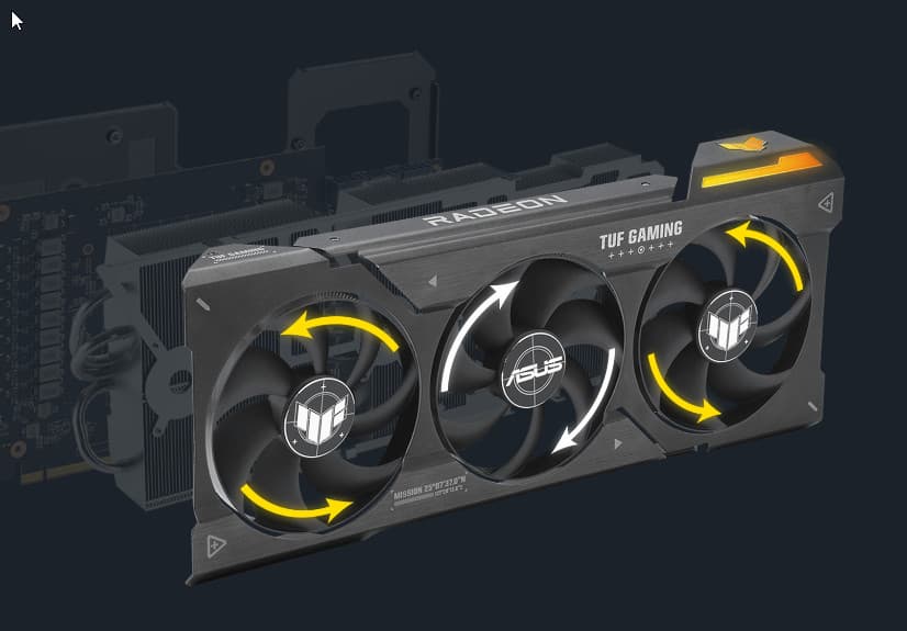Поверх радиатора установлен кожух с тремя вентиляторами типа Axial-tech, у которых концы лопастей соединены кольцом для более эффективного направления потоков воздуха на радиатор. Каждый вентилятор использует два шарикоподшипника. Как заявляет производитель, такая схема позволяет пропускать на 23% больше воздуха, что улучшает охлаждение, но при этом шум не возрастает.