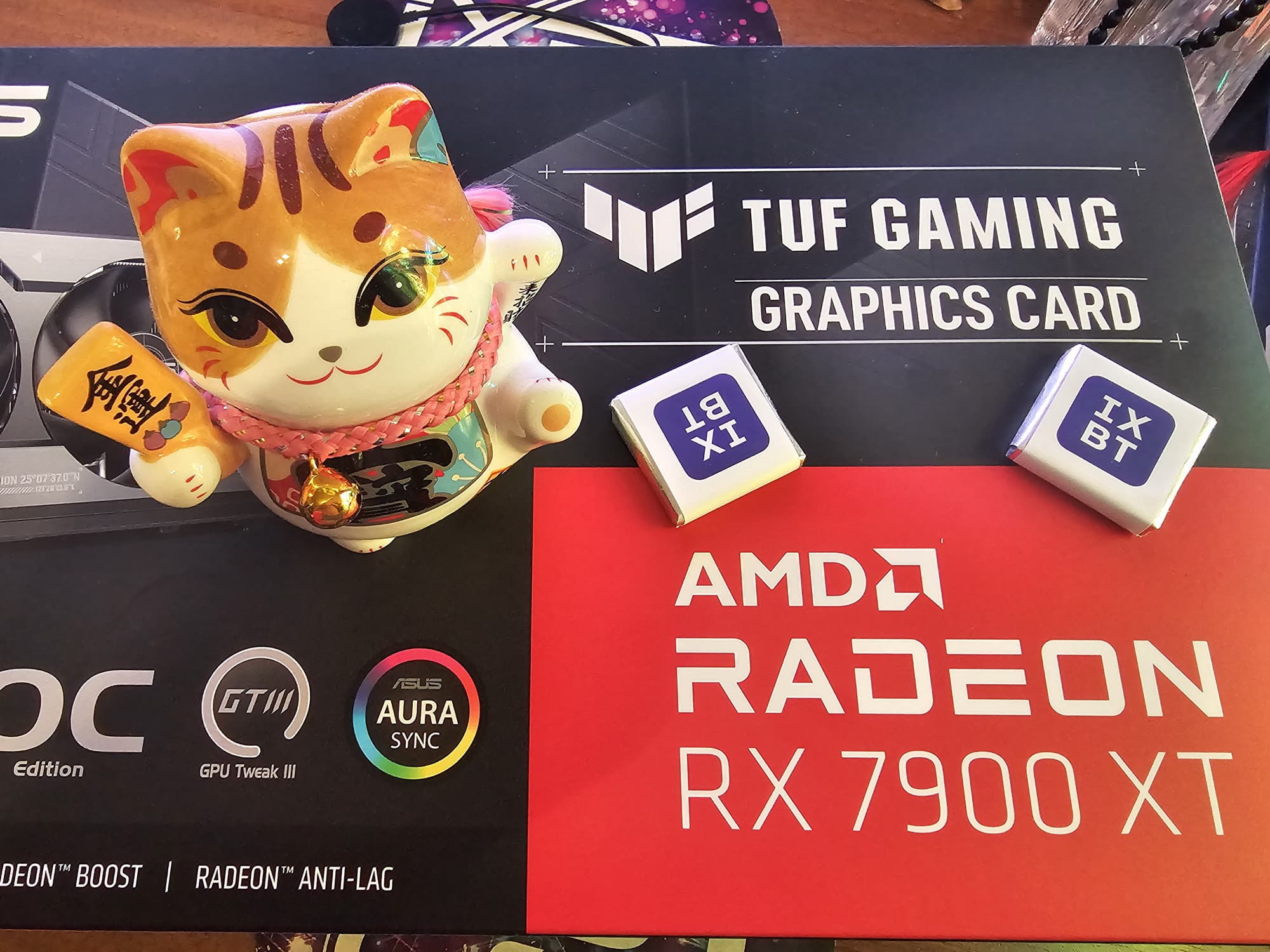 Тем не менее, всё же нельзя забывать, что помимо карт на базе Nvidia GeForce и активно исследуемых нами в последнее время Intel Arc имеются еще и их аналоги на базе AMD Radeon. Поэтому мы стараемся по возможности чередовать обзоры. И вот сегодня объектом нашего рассмотрения является почти флагманский продукт Asus — видеокарта на базе Radeon RX 7900 XT из игровой линейки TUF Gaming, которая объединяет видеокарты среднего и топового уровней, имеющие не менее выдающиеся характеристики, чем у аналогов из линейки ROG Strix, но выполненные без излишних наворотов в плане СО, подсветки и комплекта поставки. Кстати, у Asus нет флагманских решений Radeon RX 7900 XTX/XT в линейке ROG Strix — в отличие от предыдущего поколения Radeon RX 6000 и всех поколений видеокарт семейства GeForce. Это говорит о многом. Именно поэтому наша сегодняшняя видеокарта, пусть она и из линейки TUF Gaming, является практически флагманской для решений на базе GPU AMD, выше нее только TUF Gaming RX 7900 XTX.