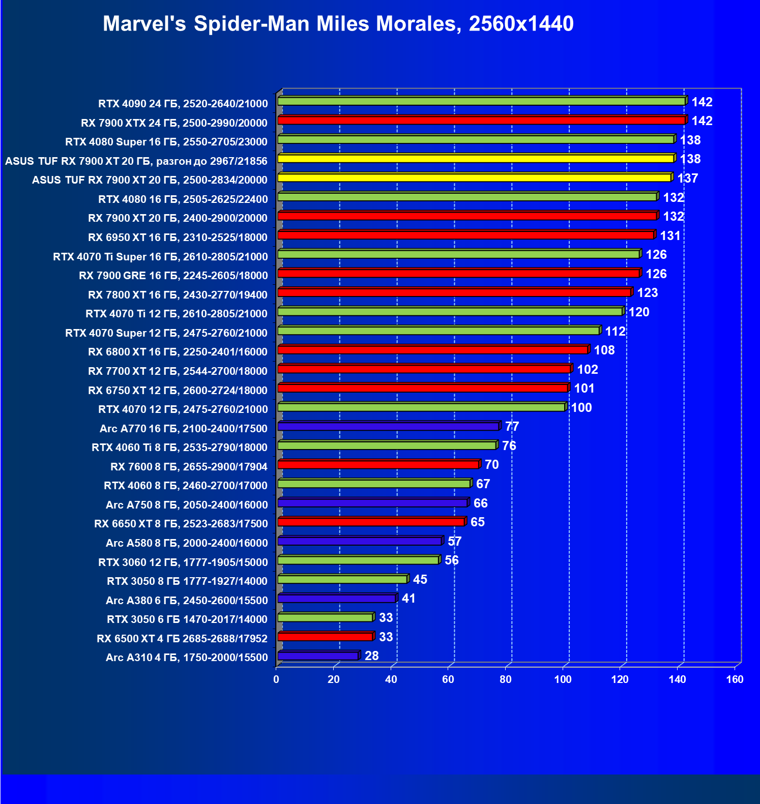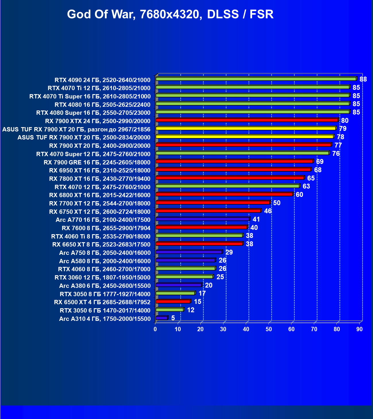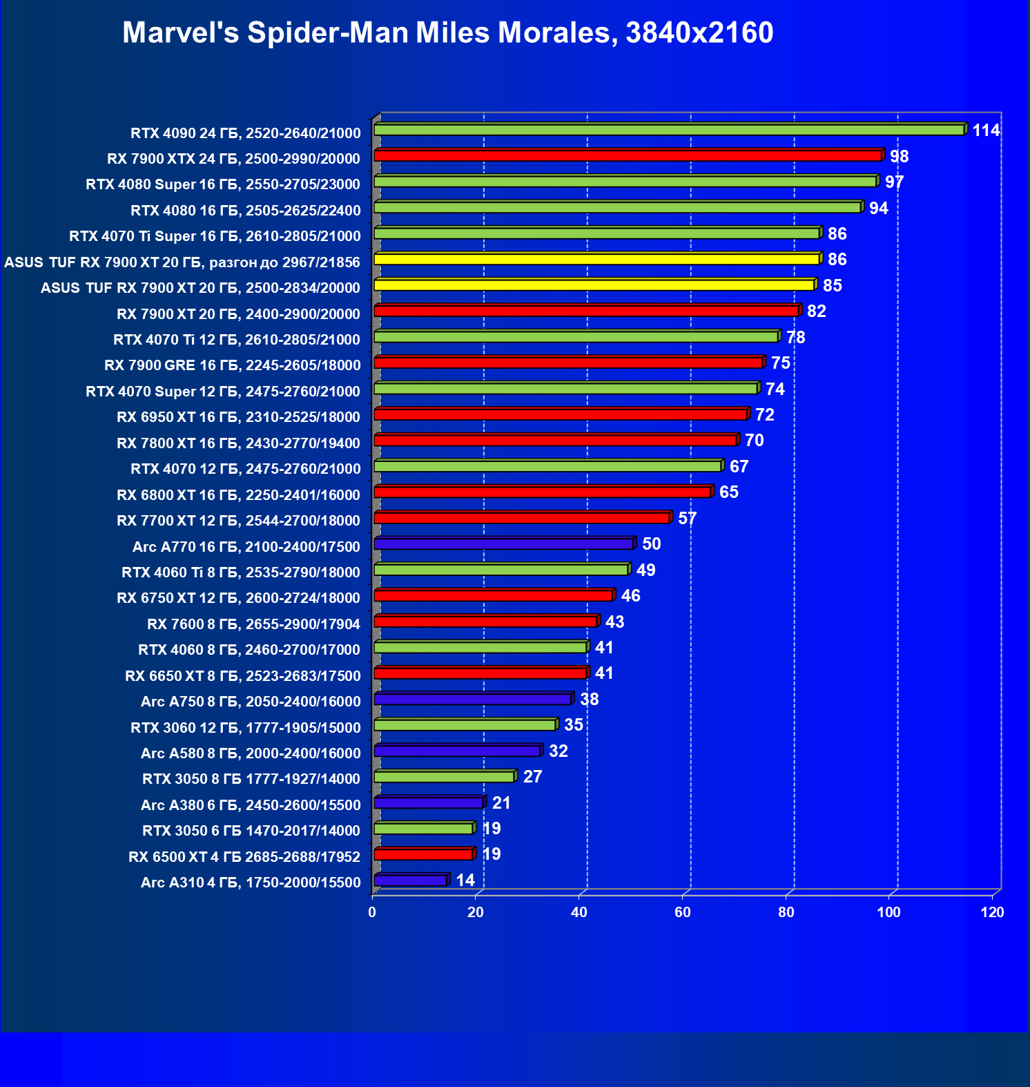 | 23 | Asus TUF RX 7900 XT 20 ГБ, 2500—2834/20000 | 264 | 3014 | 114 000 |