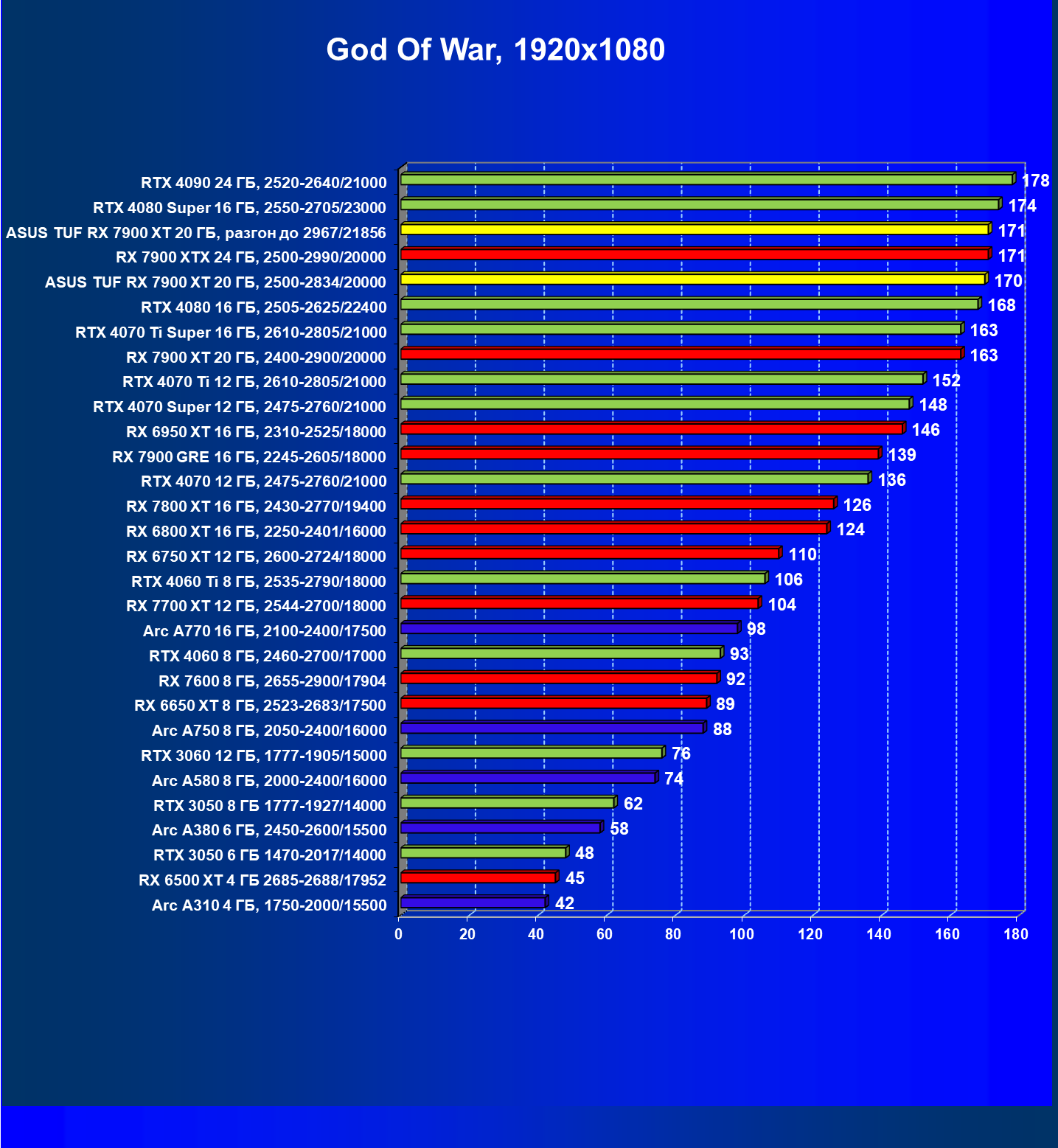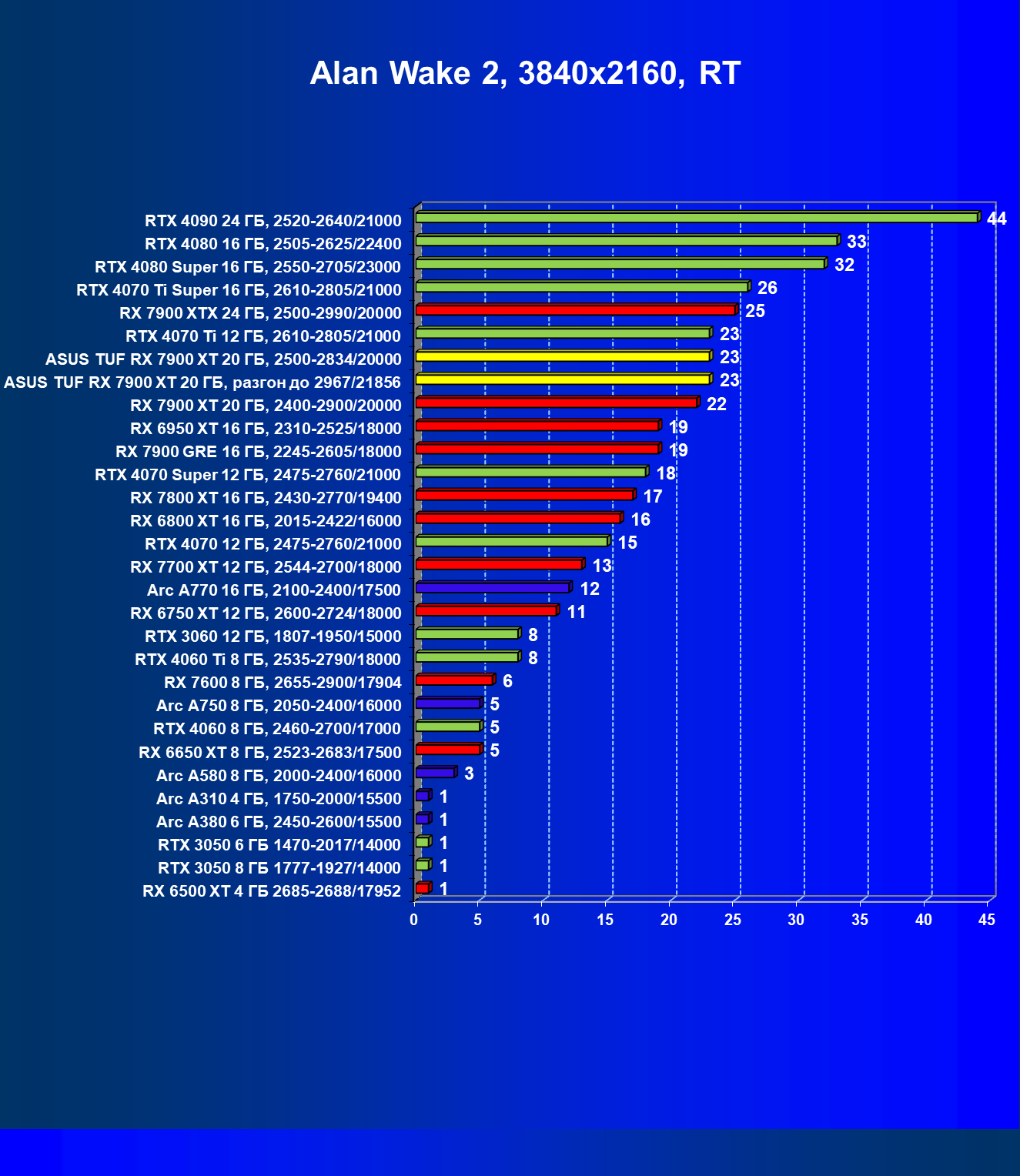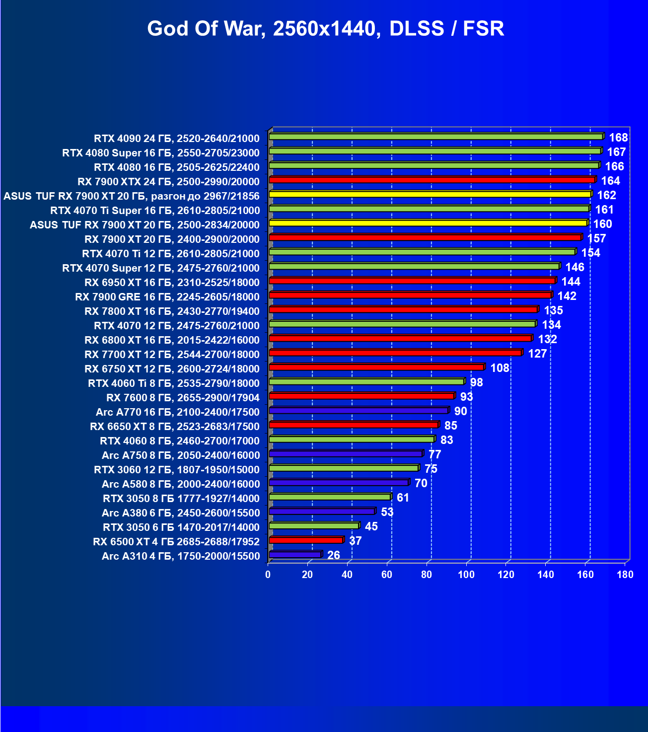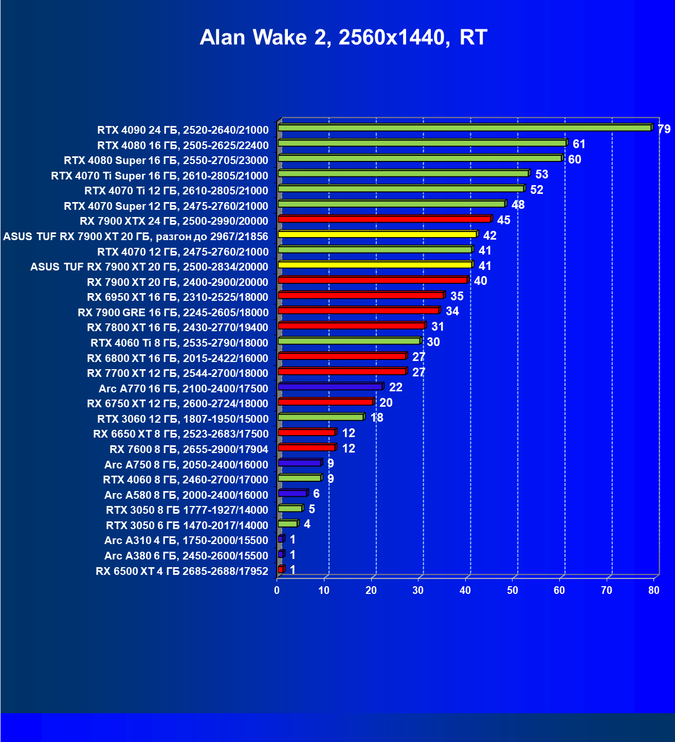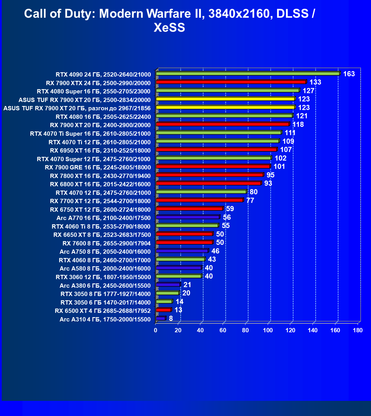 | 24 | Asus TUF RX 7900 XT 20 ГБ, разгон до 2967/21856 | 218 | 2483 | 114 000 |