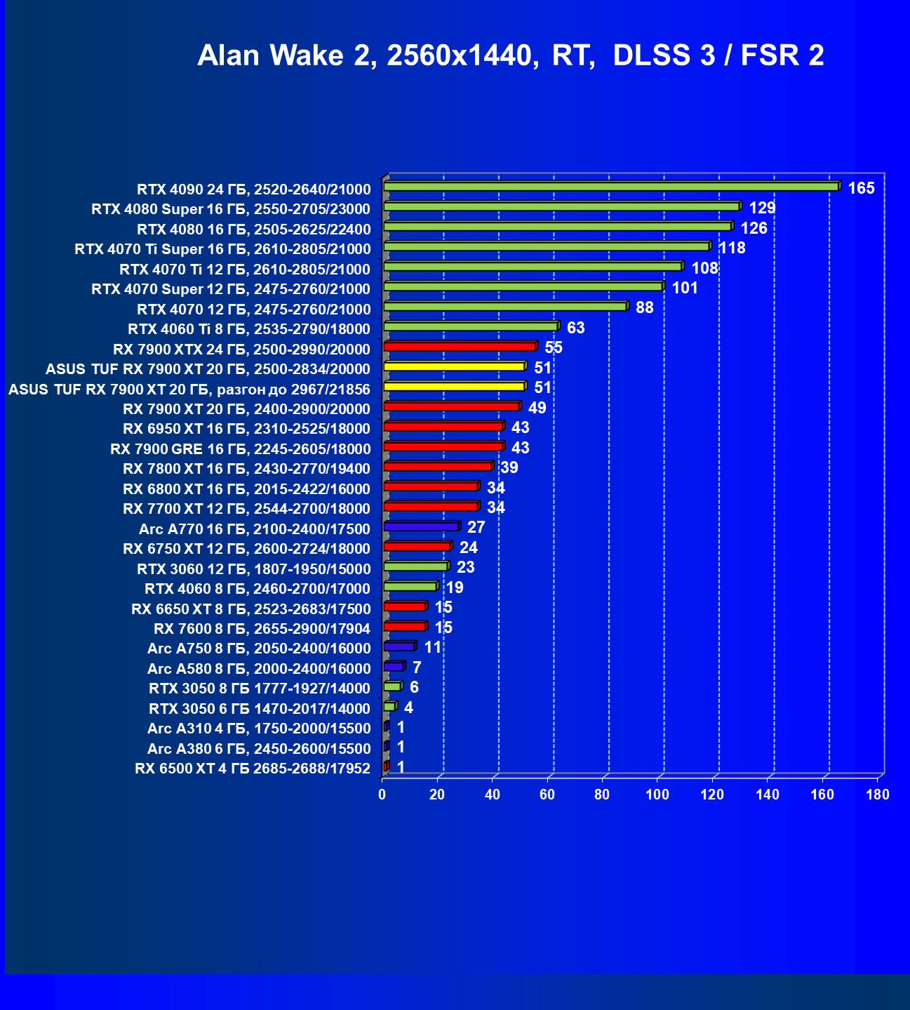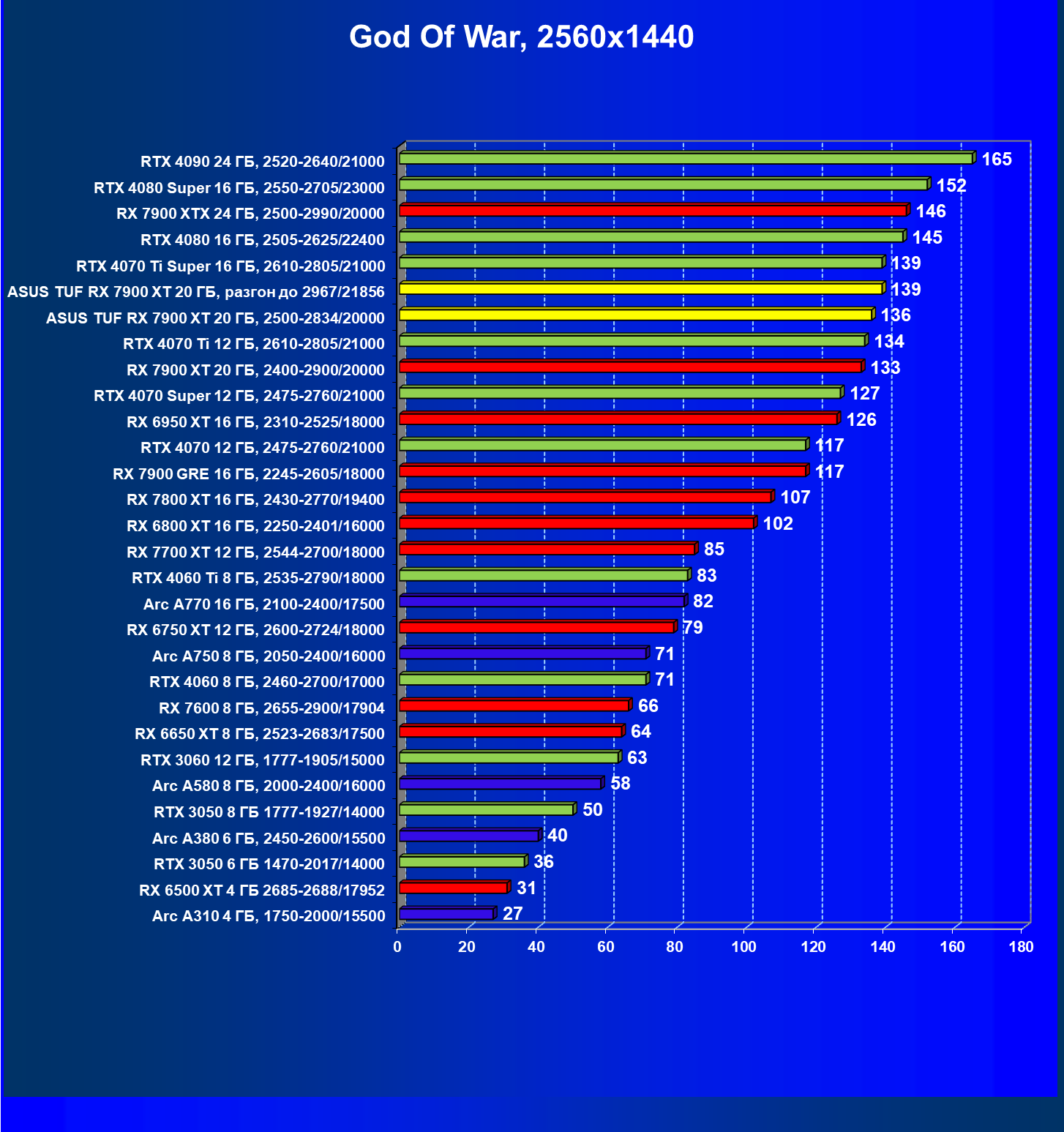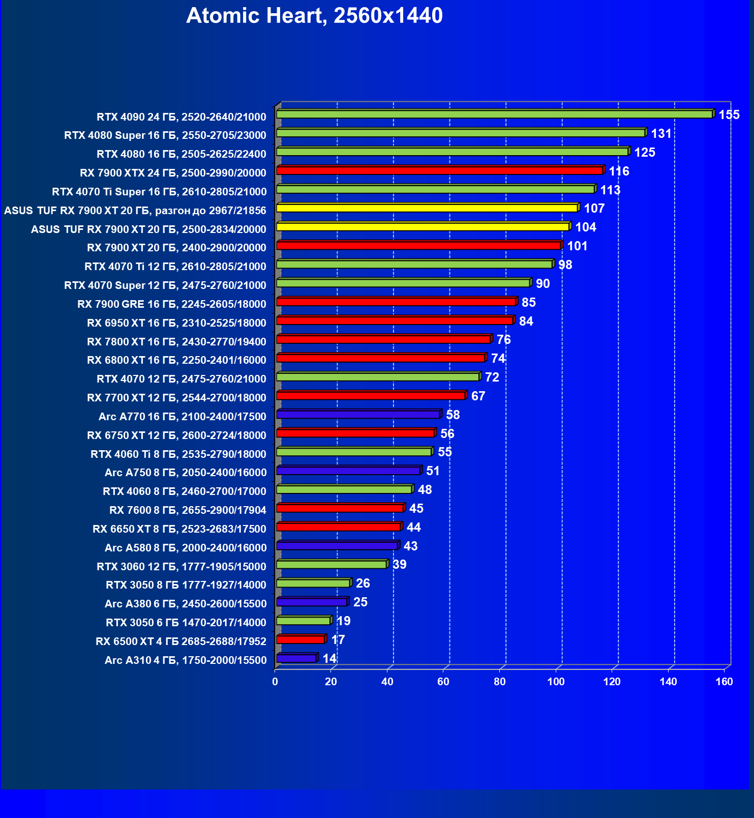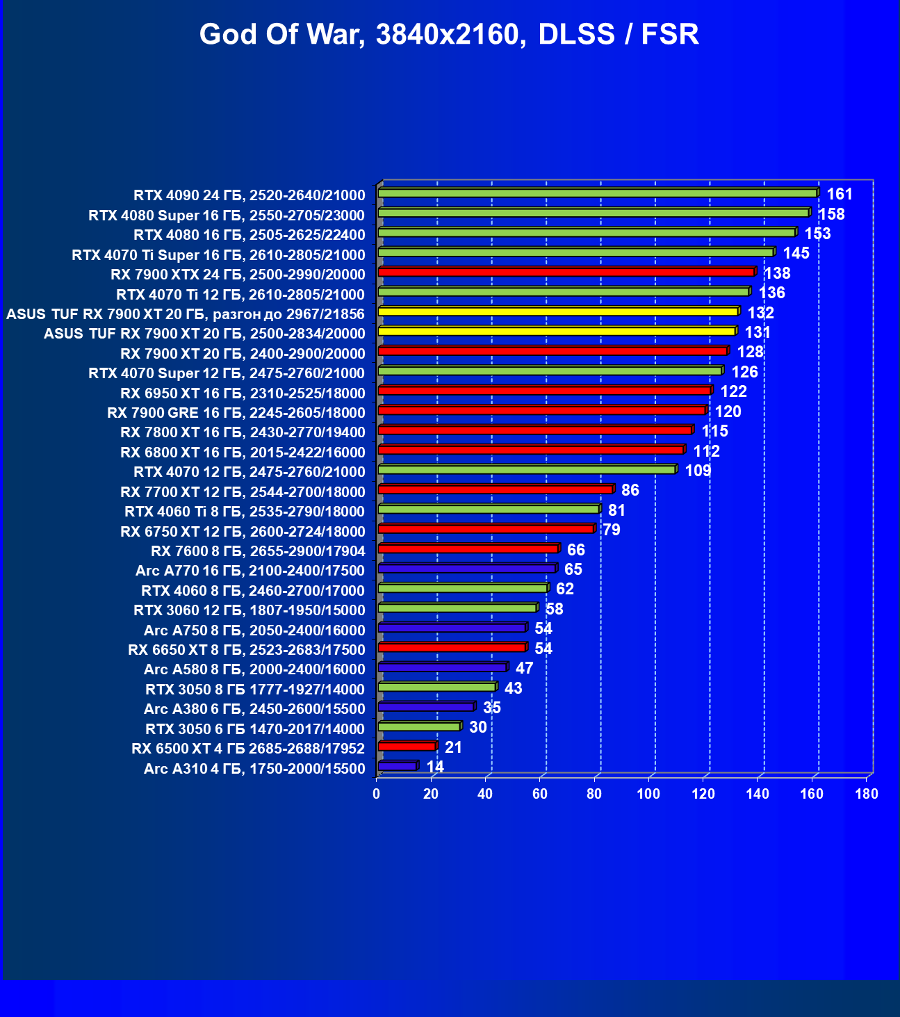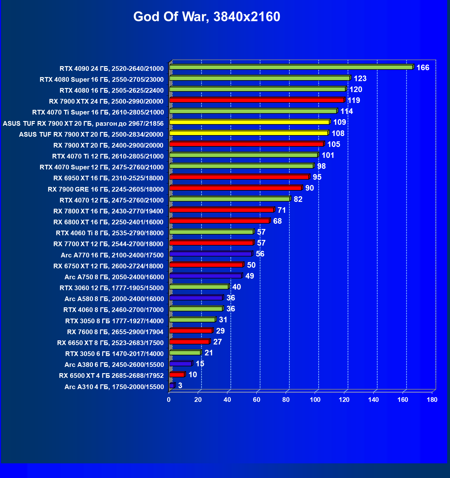 | 24 | Asus TUF RX 7900 XT 20 ГБ, разгон до 2967/21856 | 218 | 2483 | 114 000 |