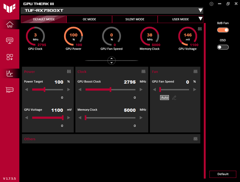 Через фирменную утилиту Asus GPU Tweak III можно управлять работой карты.