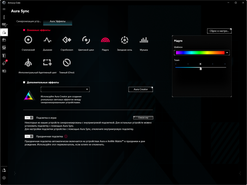 Управление подсветкой традиционно у Asus возложено на контроллер Aura.
