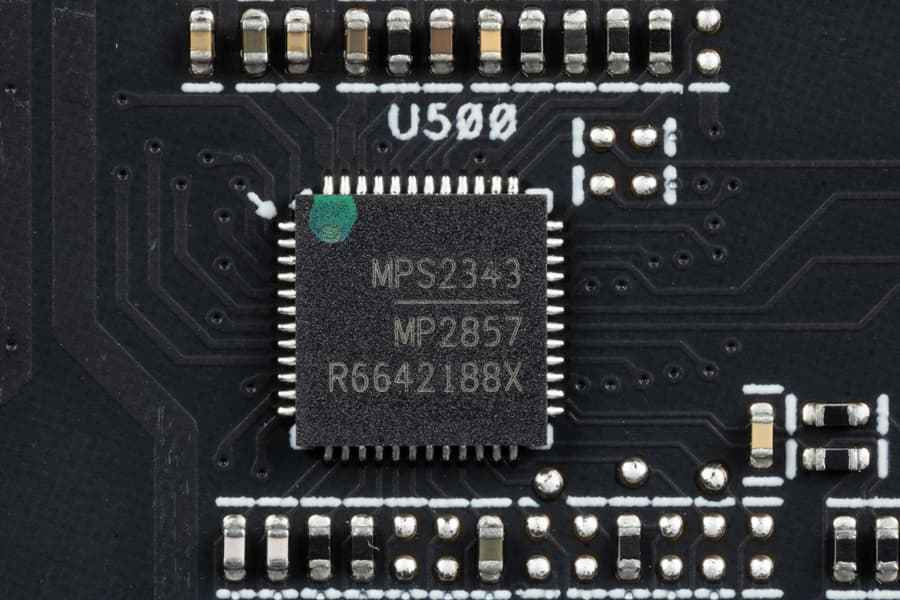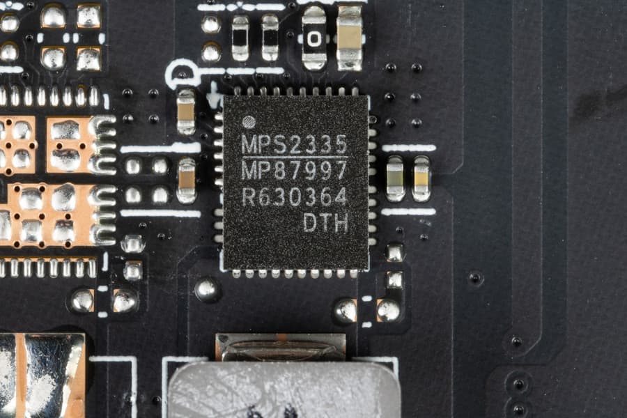 В преобразователе питания ядра используются транзисторные сборки DrMOS — в данном случае MP87997 (Monolith Power Systems), рассчитанные максимум на 70 А.