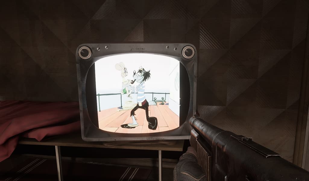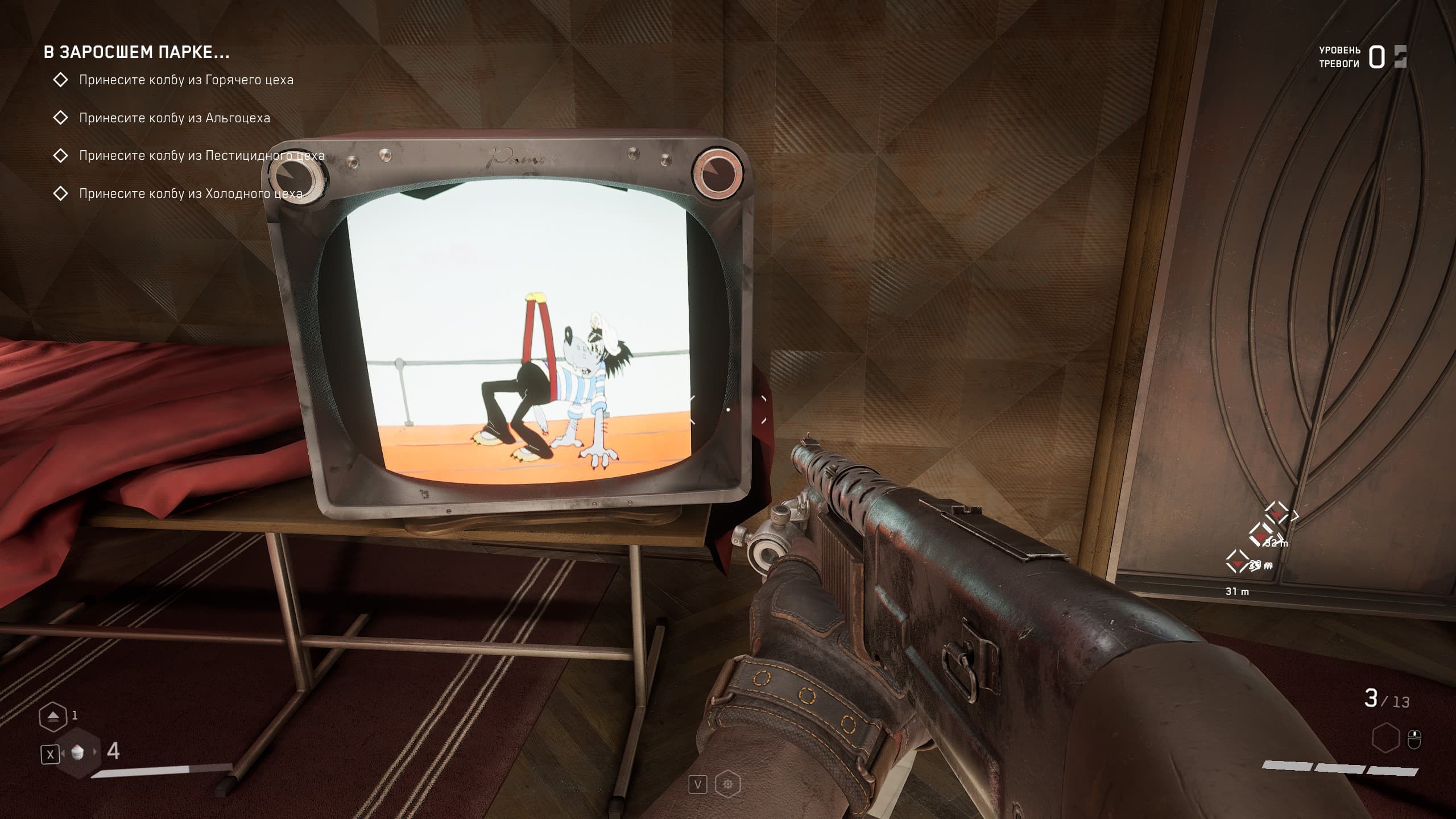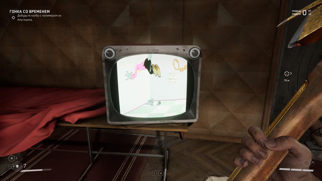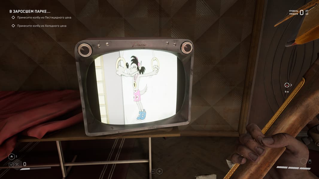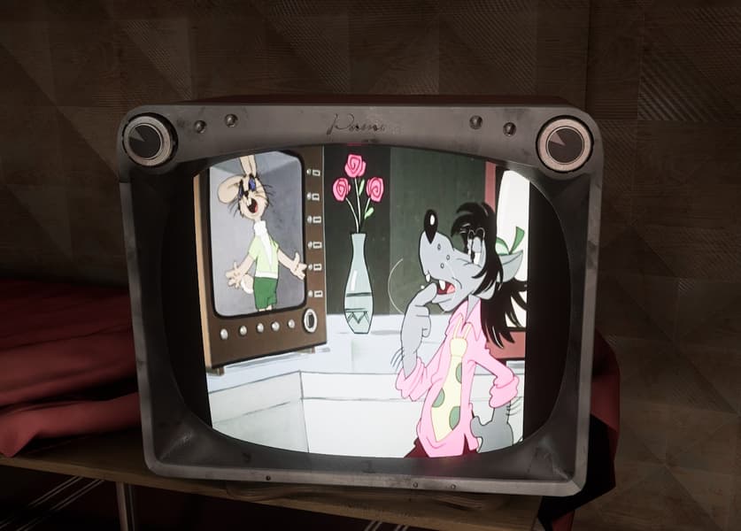 В разных встречающихся нам на пути комнатах для сохранения мы можем наблюдать разные серии мультика «Ну, погоди!».