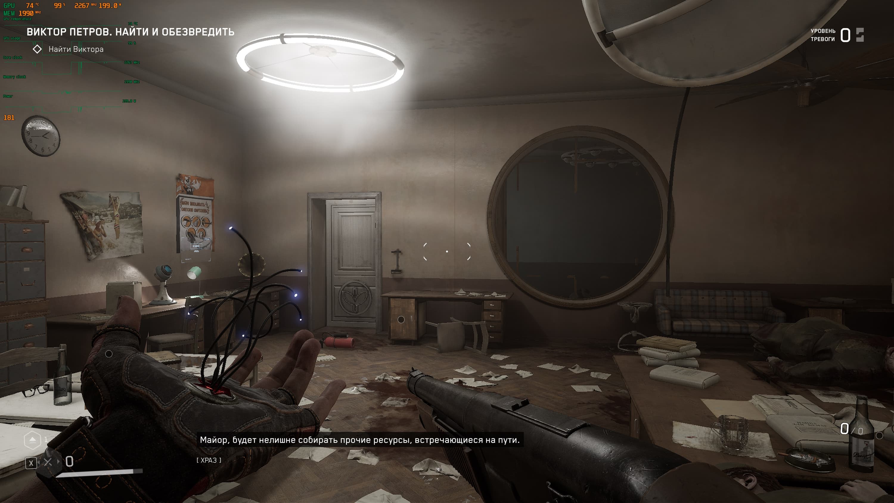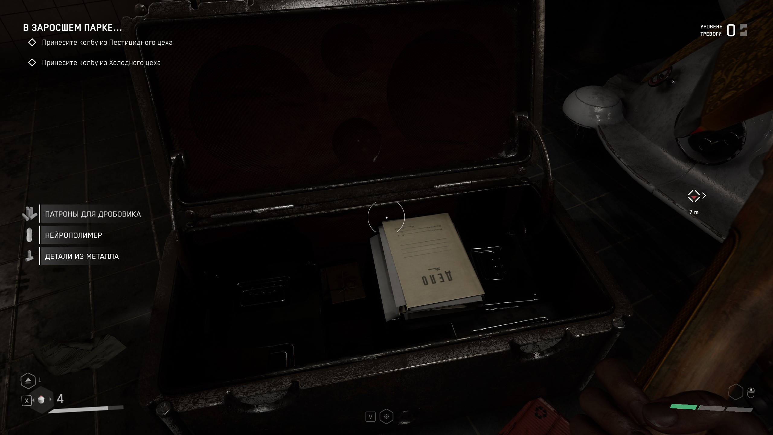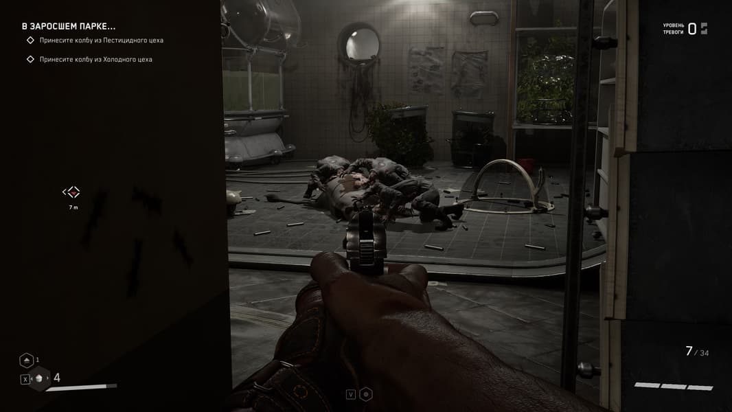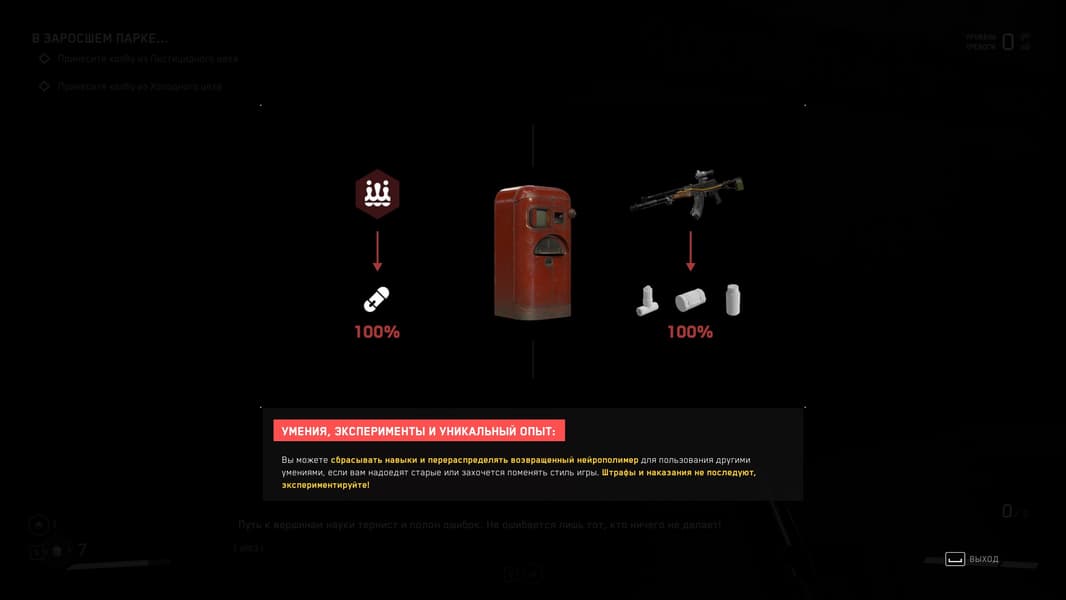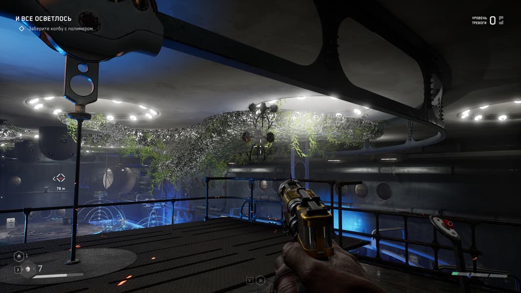 Локации игры насыщенны местами, где можно пошуршать своей чудо-рукой, чтобы найти что-то возможно ценное для прокачки навыков и умений, а так же боеприпасы и элементы для прокачки оружия, но в целом механика такова, что бегаешь из локации в локацию и как экстрасенс наводишь свою руку с перчаткой на шкафы и всякую мебель с мыслью: а вдруг что полезное выскочит, а мы собираем все, что выпадет, а дальше уж разберемся — куда это барахло применить.
