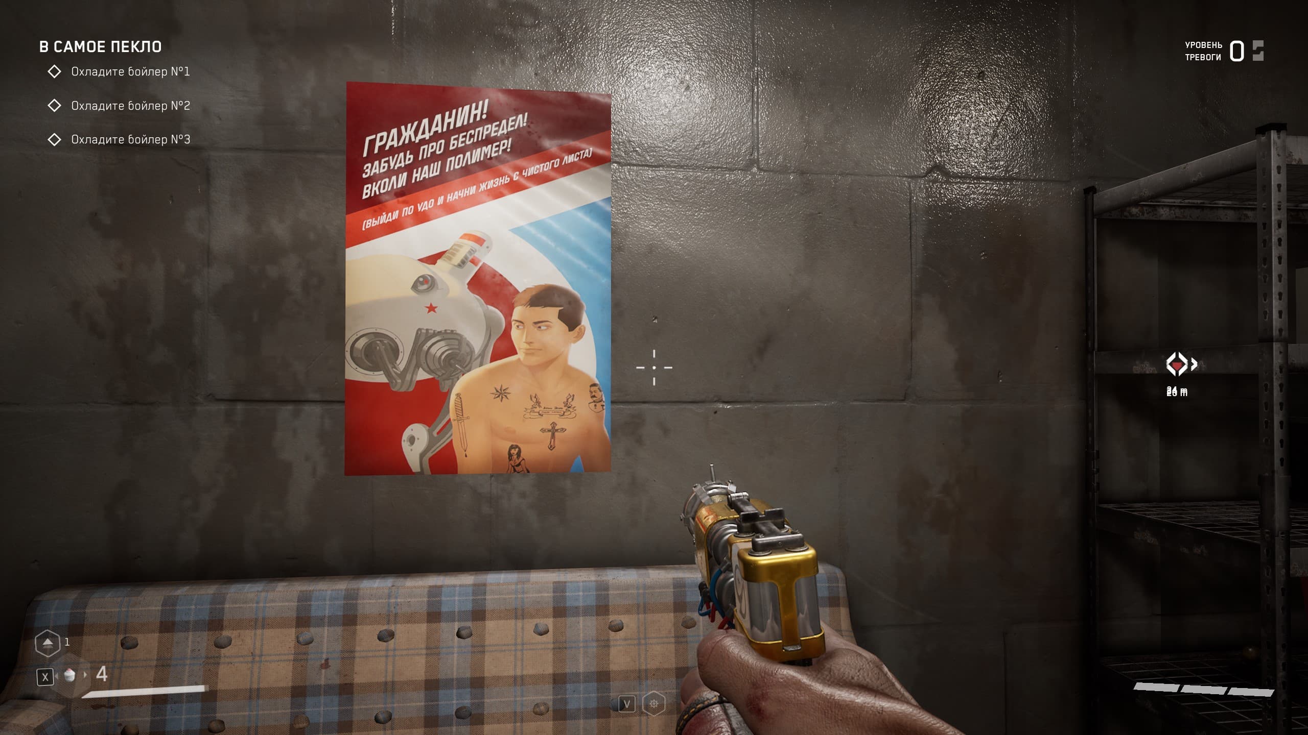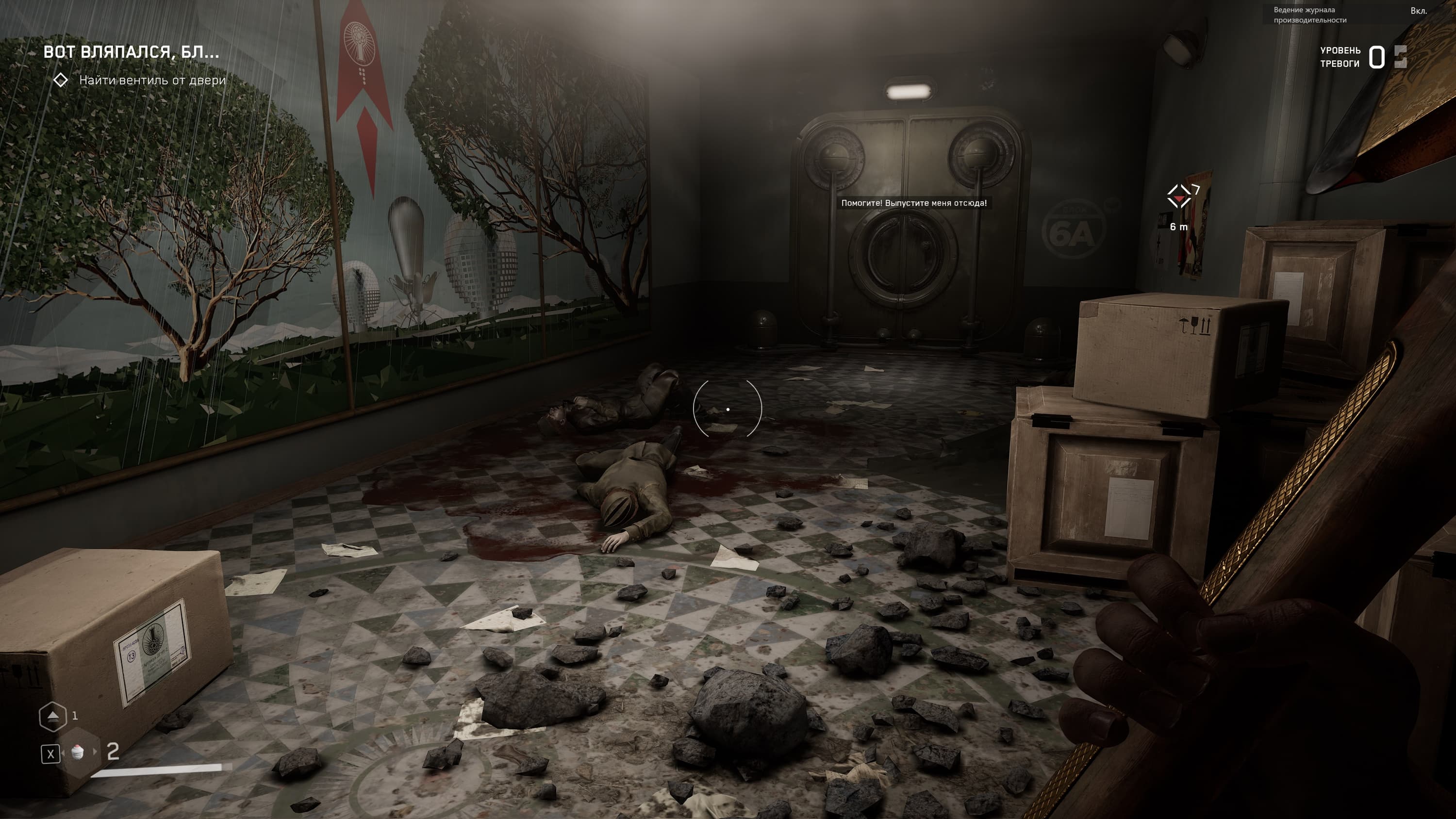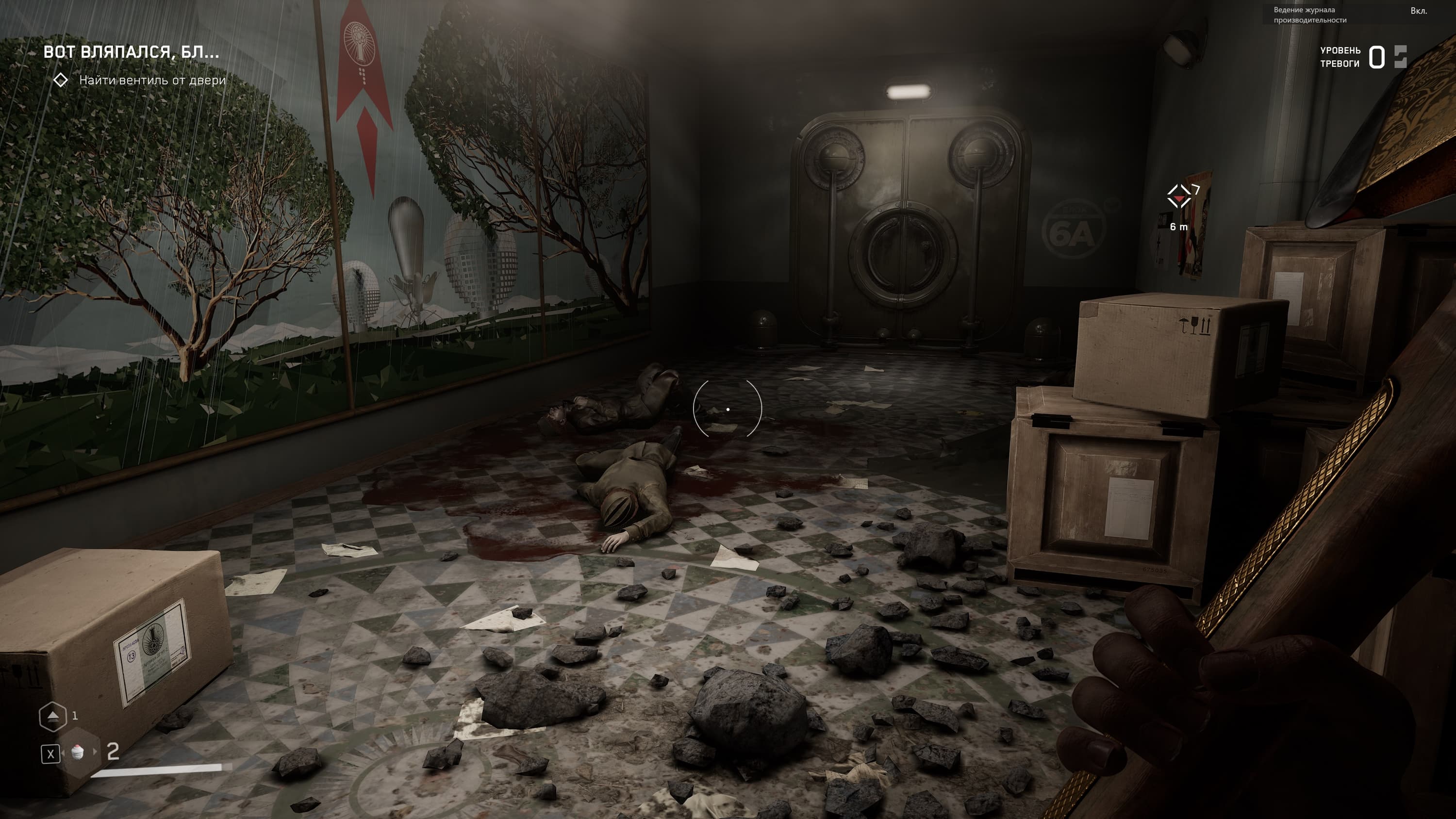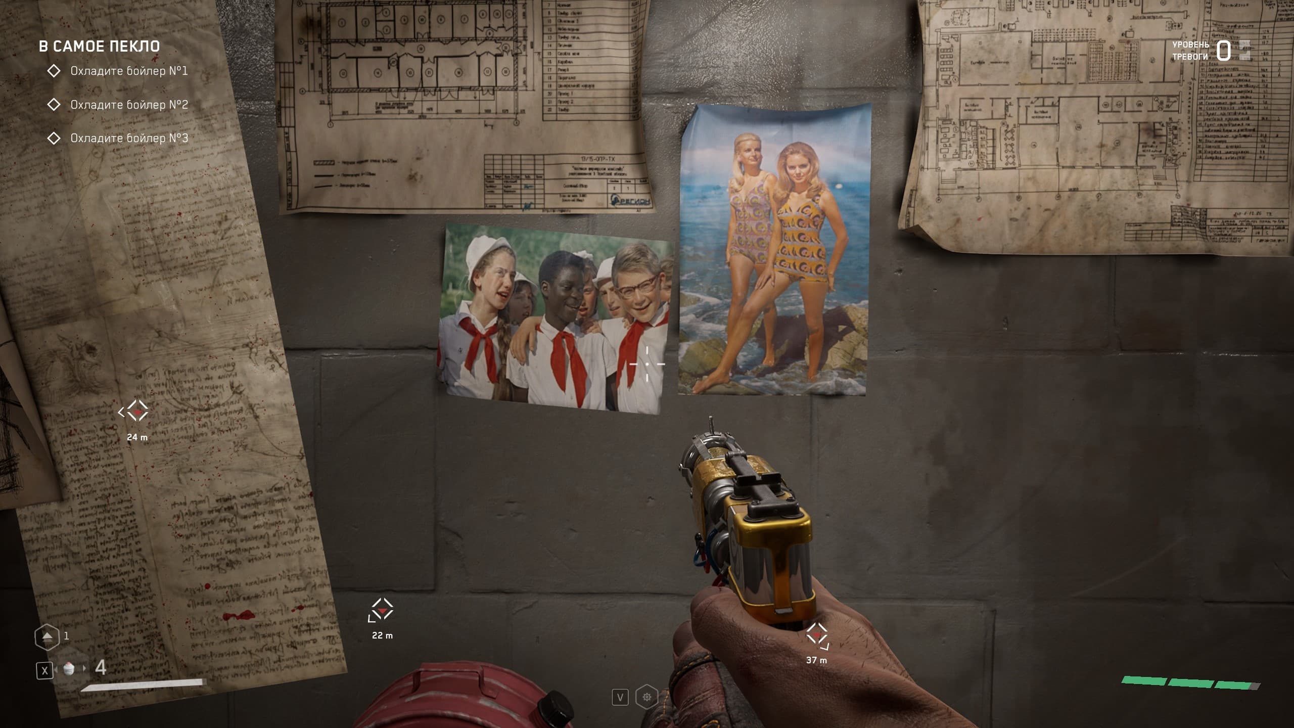 Локации игры насыщенны местами, где можно пошуршать своей чудо-рукой, чтобы найти что-то возможно ценное для прокачки навыков и умений, а так же боеприпасы и элементы для прокачки оружия, но в целом механика такова, что бегаешь из локации в локацию и как экстрасенс наводишь свою руку с перчаткой на шкафы и всякую мебель с мыслью: а вдруг что полезное выскочит, а мы собираем все, что выпадет, а дальше уж разберемся — куда это барахло применить.