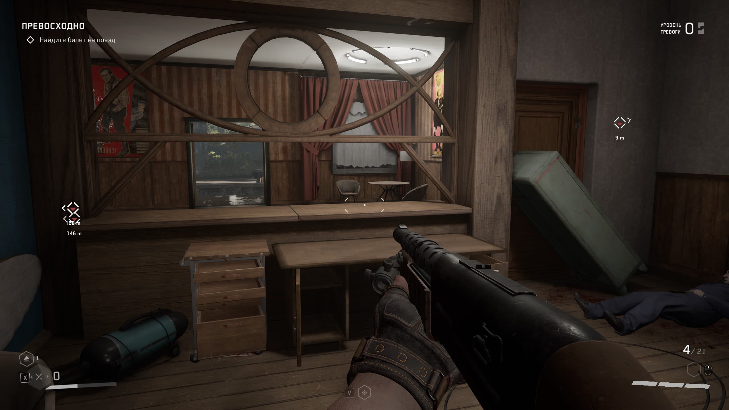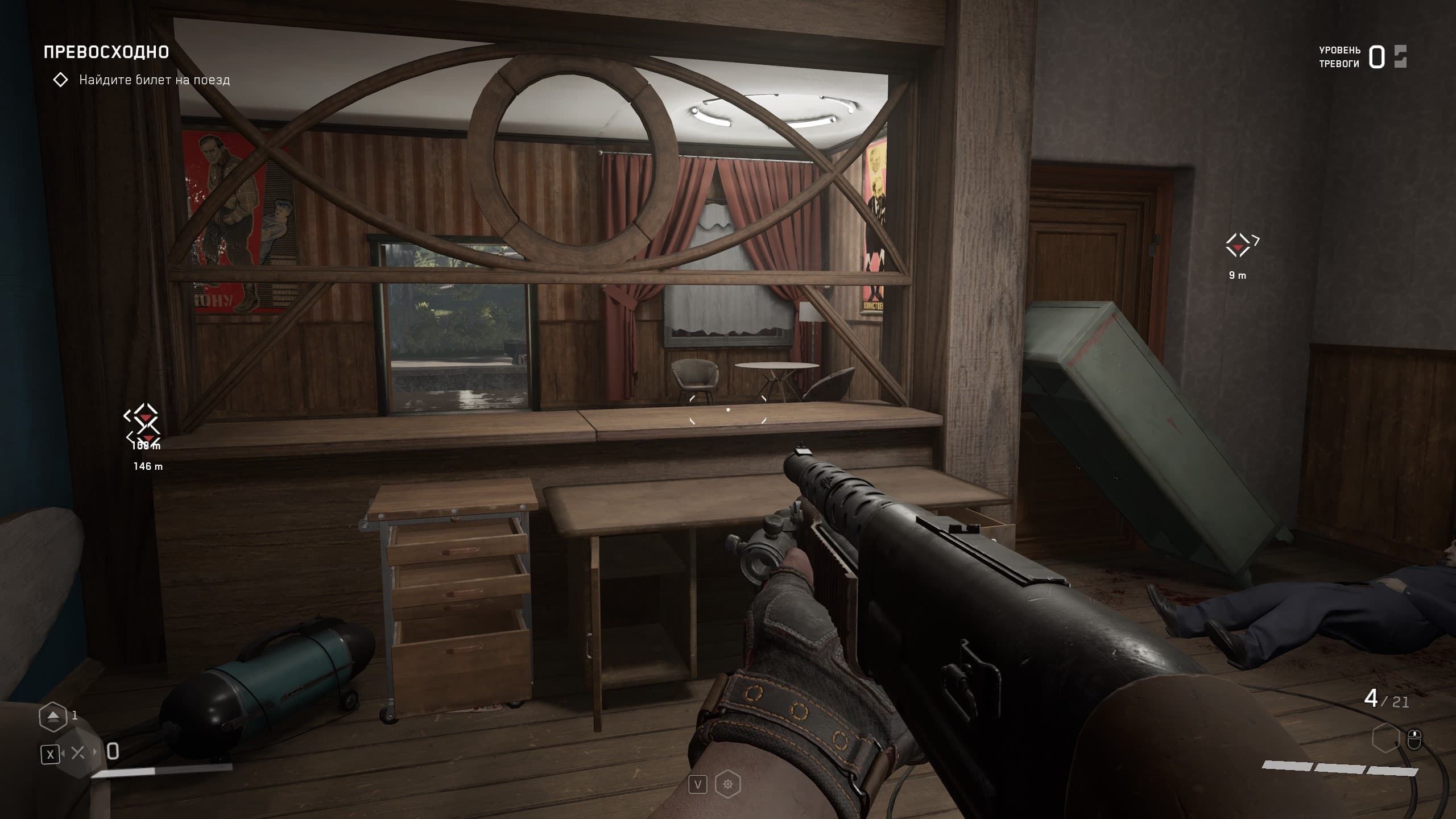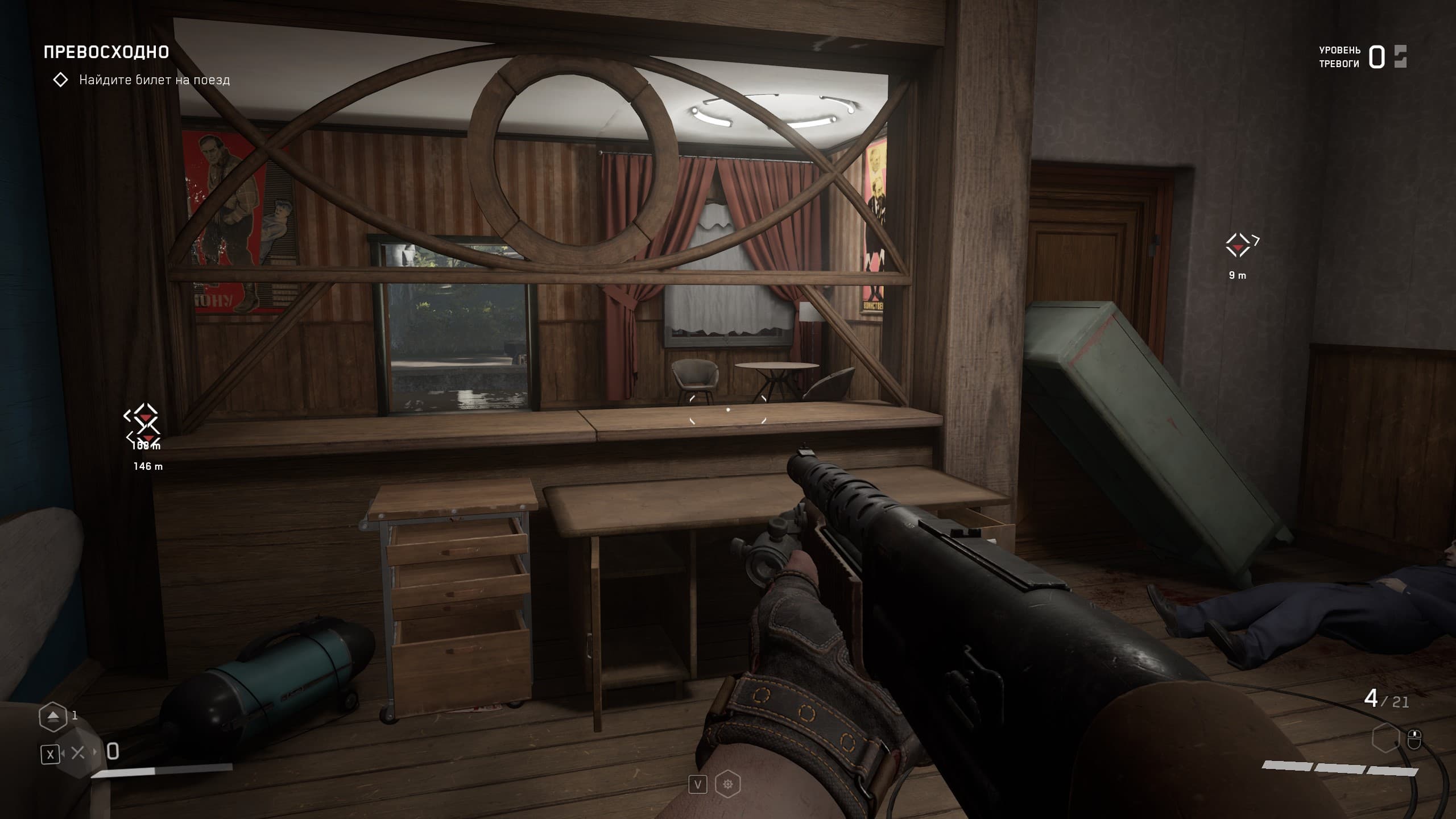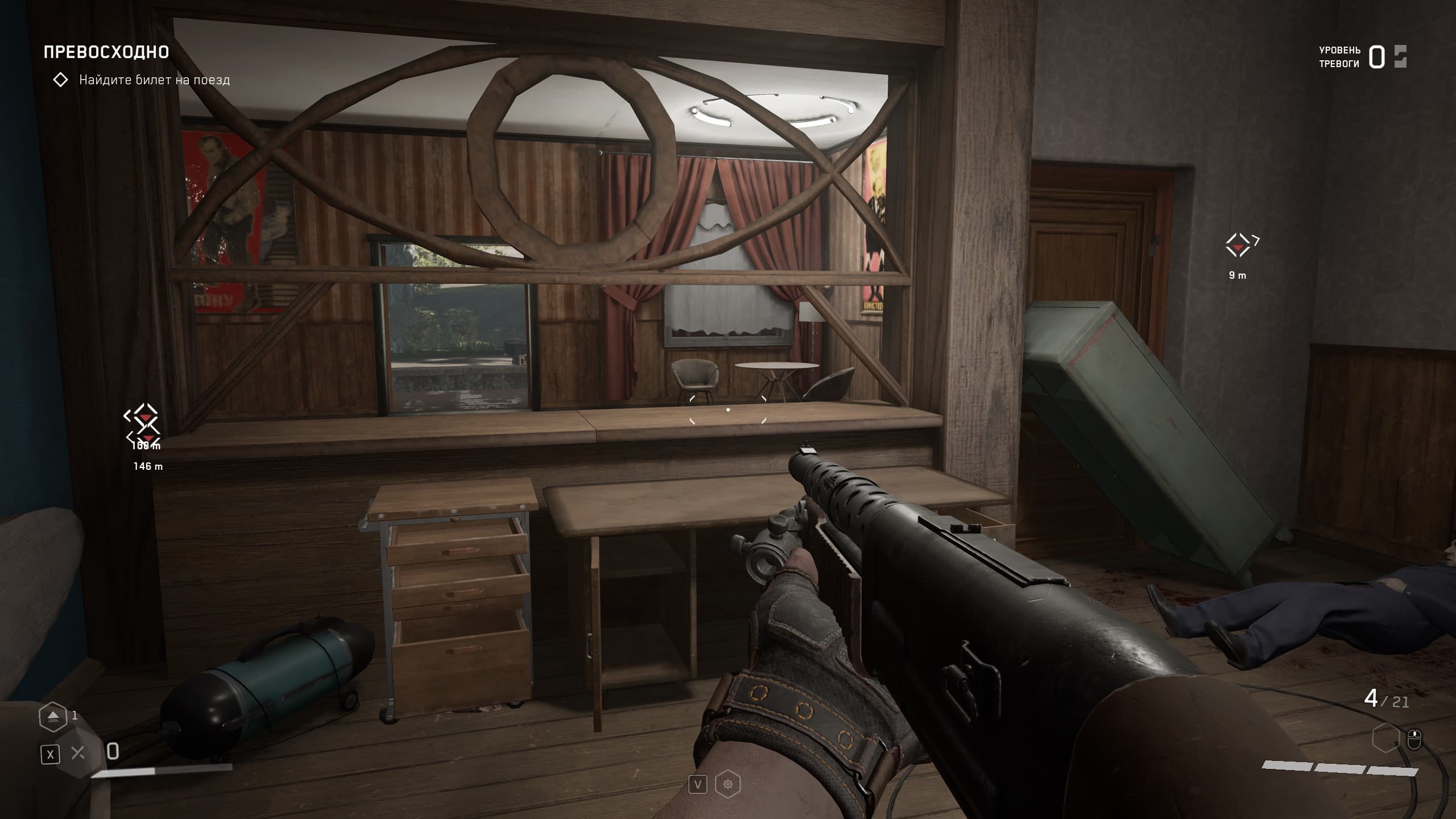 Локации игры насыщенны местами, где можно пошуршать своей чудо-рукой, чтобы найти что-то возможно ценное для прокачки навыков и умений, а так же боеприпасы и элементы для прокачки оружия, но в целом механика такова, что бегаешь из локации в локацию и как экстрасенс наводишь свою руку с перчаткой на шкафы и всякую мебель с мыслью: а вдруг что полезное выскочит, а мы собираем все, что выпадет, а дальше уж разберемся — куда это барахло применить.