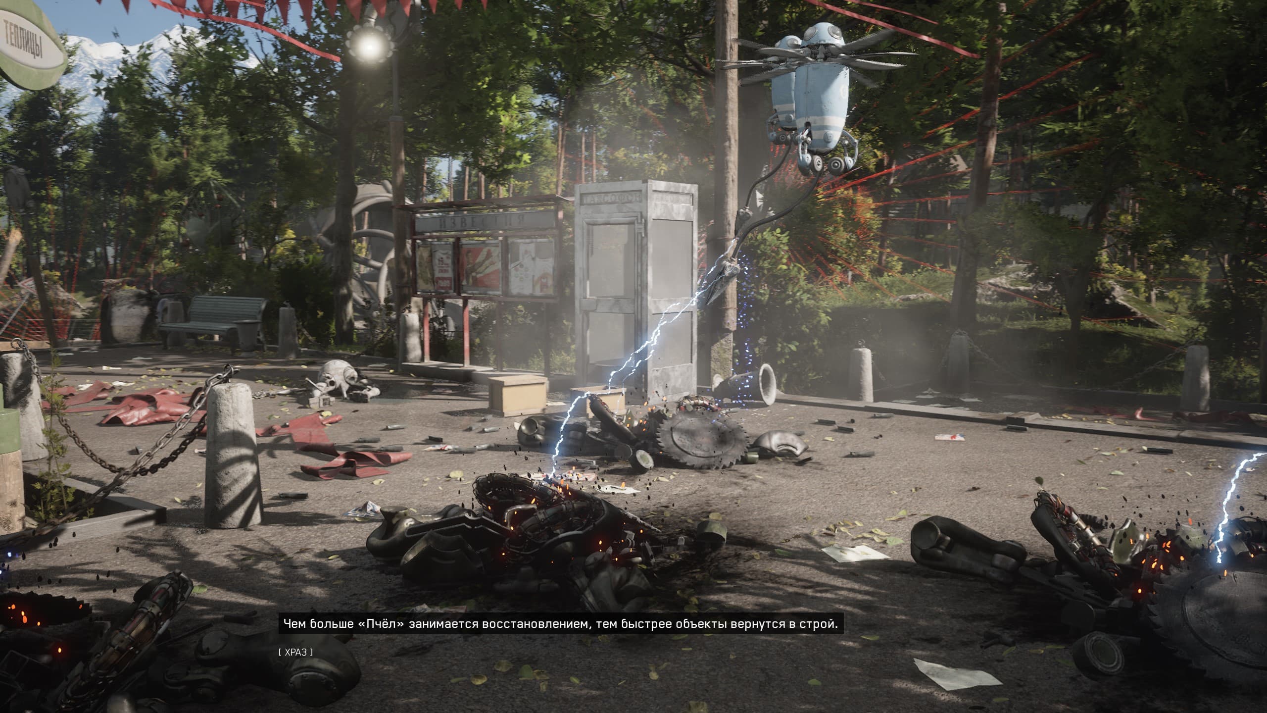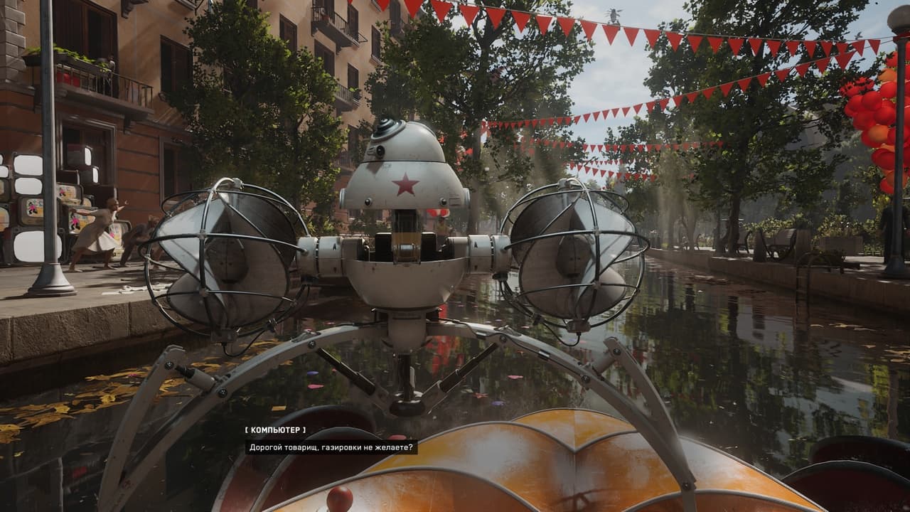 Сложно себе представить, как может выглядеть игра, в которой атмосфера времен Советского Союза, причем в игре это именно сверх процветающее время, и вдруг восстание машин! Разработчикам хвала и слава, что сумели создать такой уникальный сценарий и его отлично реализовать. Однако мысль промелькнула: если бы такое восстание было во времена 90-х годов, когда жуткий криминал был по всей стране, банды, низкие зарплаты, разрушающиеся улицы и даже районы, а тут еще и восстание машин, то такой сюжет внес бы в игру еще большего адреналина, остроты и разносторонних сюжетных взаимодействий с «ИИ-персонажами», многие из которых имели бы свои «блатные» клички.