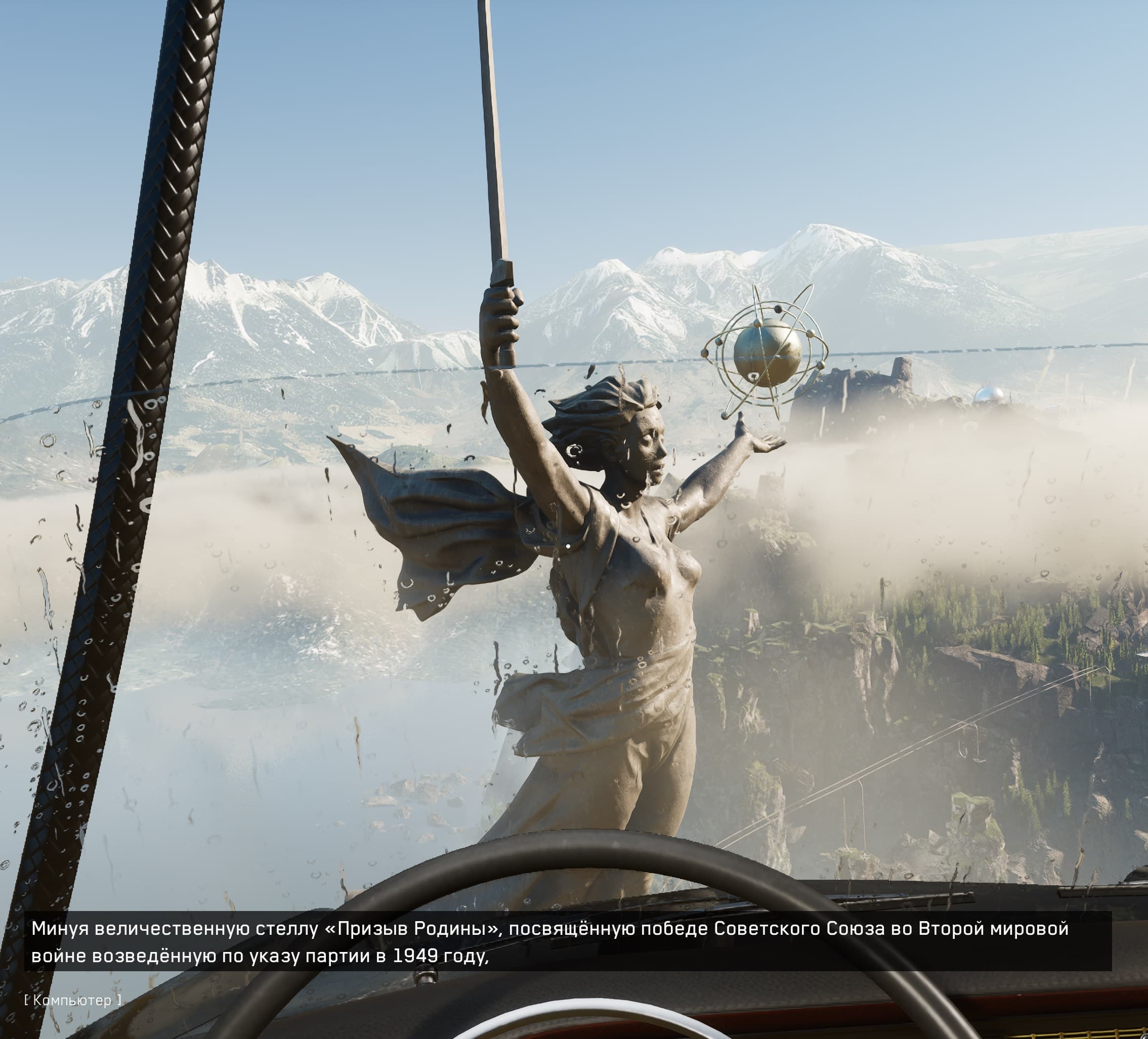 Мир игры красиво проработан, и особенно по-доброму поражают объекты, которые уж точно не ожидаешь встретить. Например, это 85-метровый памятник, завершение возведения которого в реальной жизни случилось 15 октября 1967 года, именуемый «Родина-мать зовет!», в настоящее время он находится в Волгограде, являясь главным монументом мемориального комплекса «Героям Сталинградской битвы» на Мамаевом кургане. На момент строительства это была самая высокая статуя в мире, а сейчас в списке подобных сооружений она занимает 9-е место.