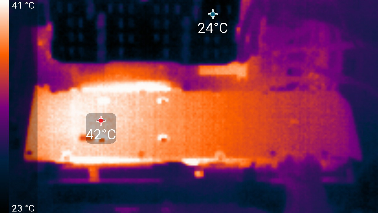 После 2-часового прогона под нагрузкой максимальная температура ядра не превысила 66 градусов, что является очень хорошим результатом. Максимальная мощность была зафиксирована на уровне 176 Вт, а максимальный нагрев наблюдался вокруг ядра.