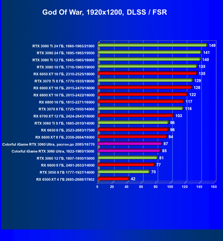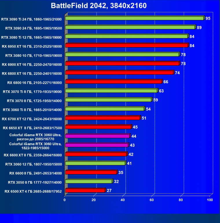 | 02 | Colorful iGame RTX 3060, 1822—1985/15000 | 86 | 343 | 40 000 |