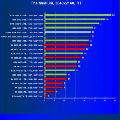 Очевидно, что использование трассировки лучей (RT) даже совместно с DLSS и/или FSR немного снизило рейтинги продуктов AMD, и поэтому карта Colorful уже оказалась рядом с RX 6900 XT (а не 6800 XT), а ручной разгон помог ей даже обойти последнего.