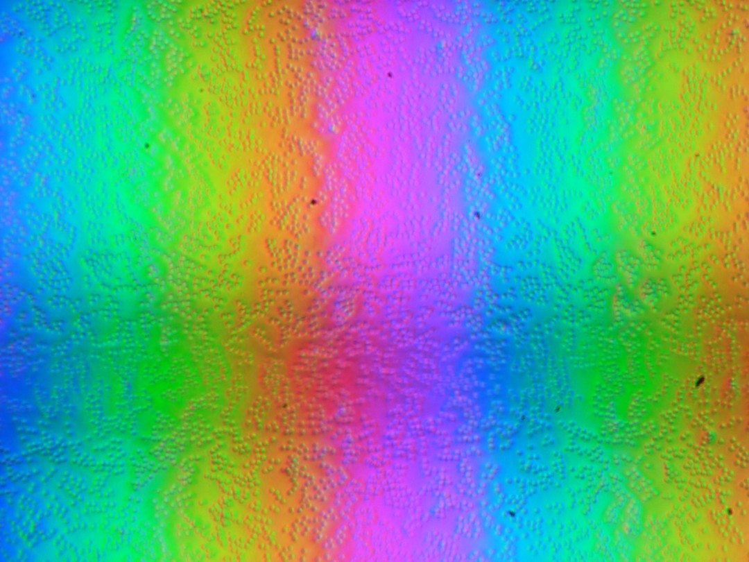Зерно этих дефектов в несколько раз меньше размеров субпикселей, поэтому фокусировка на микродефектах и «перескок» фокуса по субпикселям при изменении угла зрения выражены слабо, из-за этого нет и «кристаллического» эффекта.