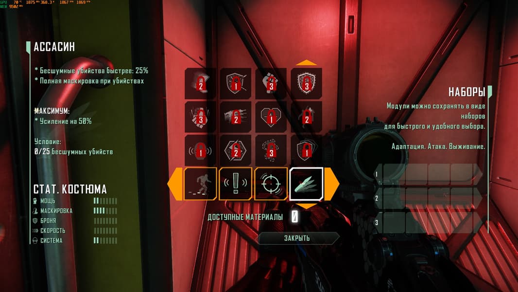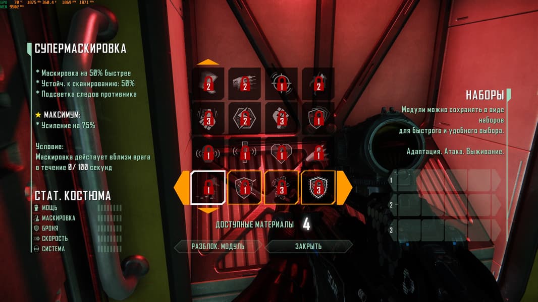 Вариантов «прокачки» костюма стало больше, однако в активное положение вы можете поставить одновременно только 4 навыка, так что есть, где поэкспериментировать.