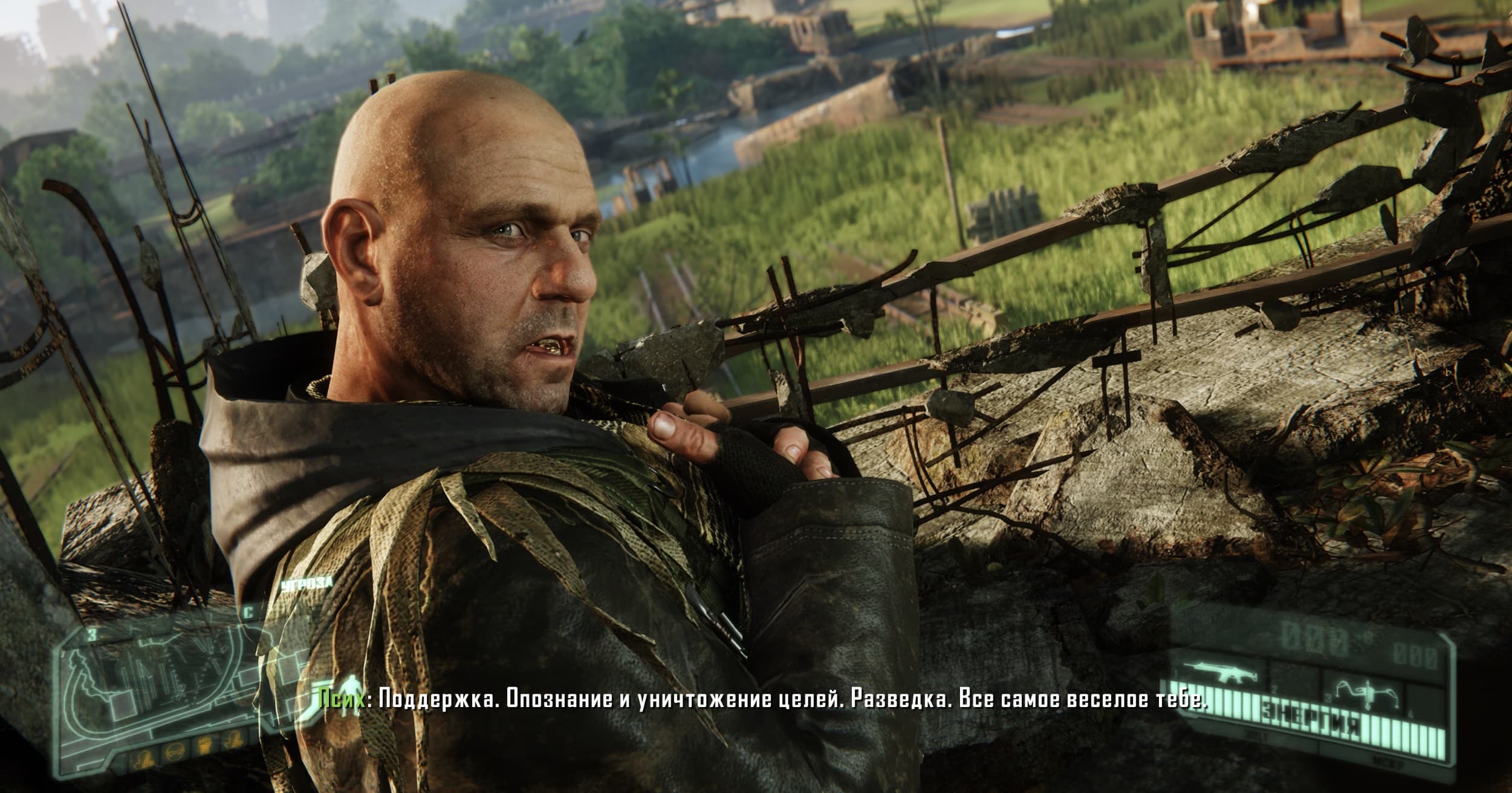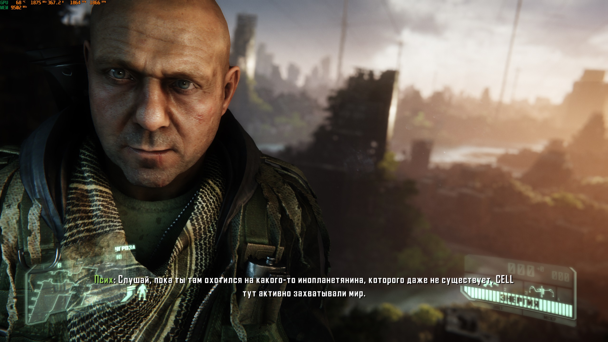 Группу по освобождению из плена нашего супер-солдата возглавляет герой из первой части Сrysis, боец с позывным «Псих». Его, как и всех остальных бойцов, носивших умную броню, лишили её посредством ужасно болезненной операции, после которой не все выжили. Это все мы понимаем в начале прохождения игры, герой «Псих» нам это расскажет. «Псих» просит ему помочь разобраться с CELL, так как считает её основной угрозой помимо пришельцев.