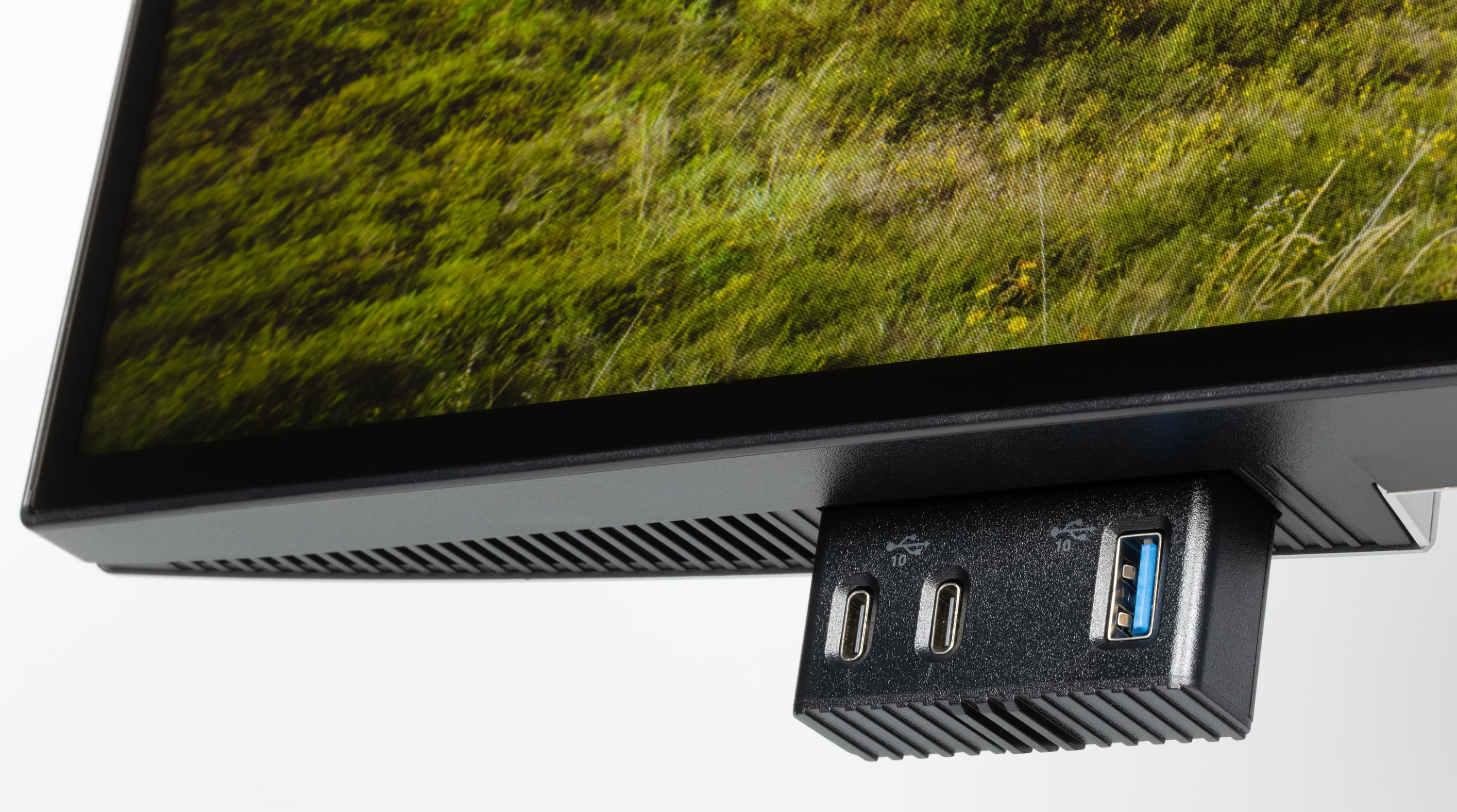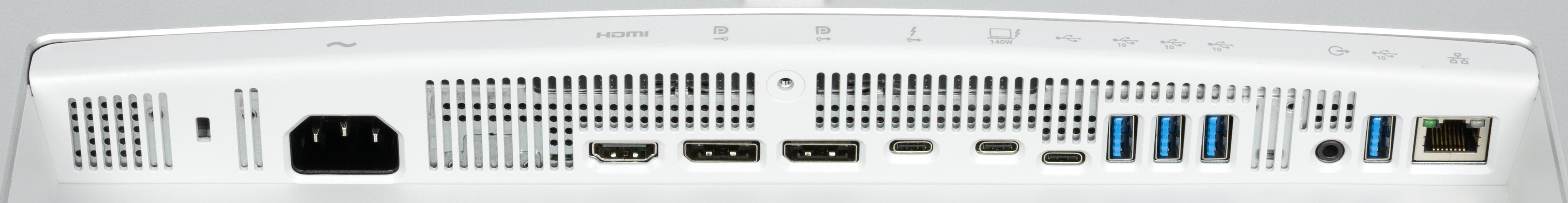 Интегрированный в монитор 7-портовый USB-концентратор (пять портов USB типа A и два USB типа C, все с поддержкой скорости 10 Гбит/с) может быть доступен через подключение к порту USB типа C или Thunderbolt 4 и в случае ввода видеосигнала через второй интерфейс. Также при вводе видеосигнала по Thunderbolt 4 работает автоматический выбор этого входа в качестве входа для концентратора при переключении на Thunderbolt 4 и автоматический выбор USB типа C или Thunderbolt 4 при переключении на другой вход. В настройках пользователь указывает, какому входу — DisplayPort или HDMI — какой вход концентратора соответствует.