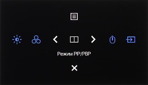 Присутствуют функции картинка-в-картинке (PIP) и картинка-рядом-с-картинкой (PBP). В режиме PIP выбирается положение дополнительного окна в одном из четырех углов, а также его размер из двух возможных. Самый большой размер — это точно 1/4 экрана, то есть окно имеет разрешение 1920×1080 с выводом точка в точку. В режиме PBP можно получить два изображения 1920×2160 с выводом точка в точку от независимых источников с заполнением всей области отображения. В режимах PIP и PBP можно переключать входы USB-концентраторов — это аналог функции KVM.