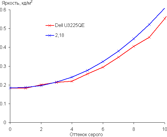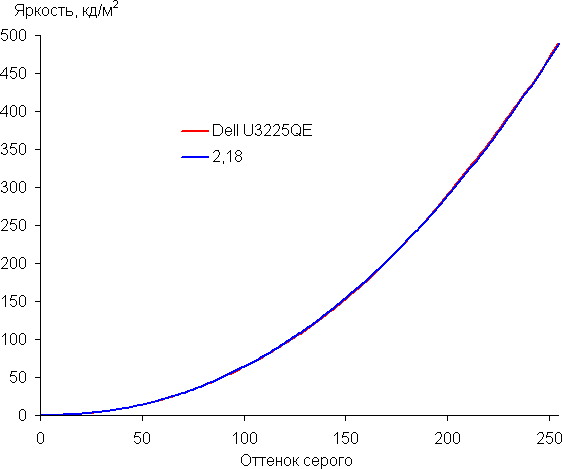 Аппроксимация полученной гамма-кривой дала показатель 2,18, что очень близко к стандартному значению 2,2, при этом реальная гамма-кривая мало отклоняется от аппроксимирующей степенной функции: