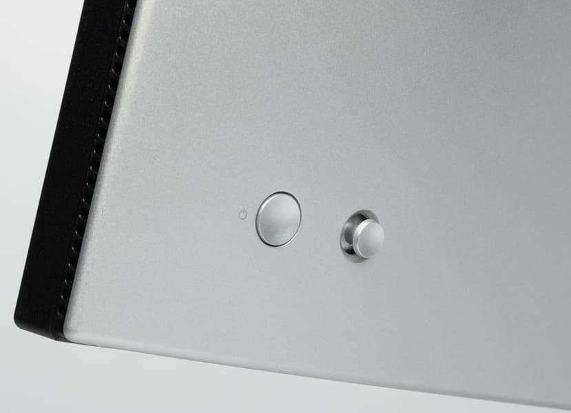 Дизайн строгий, декоративных элементов, бросающихся в глаза, нет, поэтому с точки зрения внешнего вида монитор можно считать универсальным. Панели монитора и кожухи стойки подставки изготовлены из пластика в основном с матово-серебристой поверхностью, но есть и участки с черным и светло-светло-серым пластиком. Внешняя поверхность матрицы черная, полуматовая (зеркальность хорошо выражена), жесткая. Экран выглядит как монолитная поверхность, ограниченная по периметру узкой окантовкой. Выведя изображение на экран, можно увидеть, что на самом деле между внешними границами экрана и собственно областью отображения есть неширокие поля — по 8 мм сверху и по бокам и примерно 10 мм снизу.