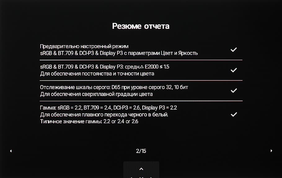 Отчет о калибровке можно посмотреть в меню установок на 15 страницах.