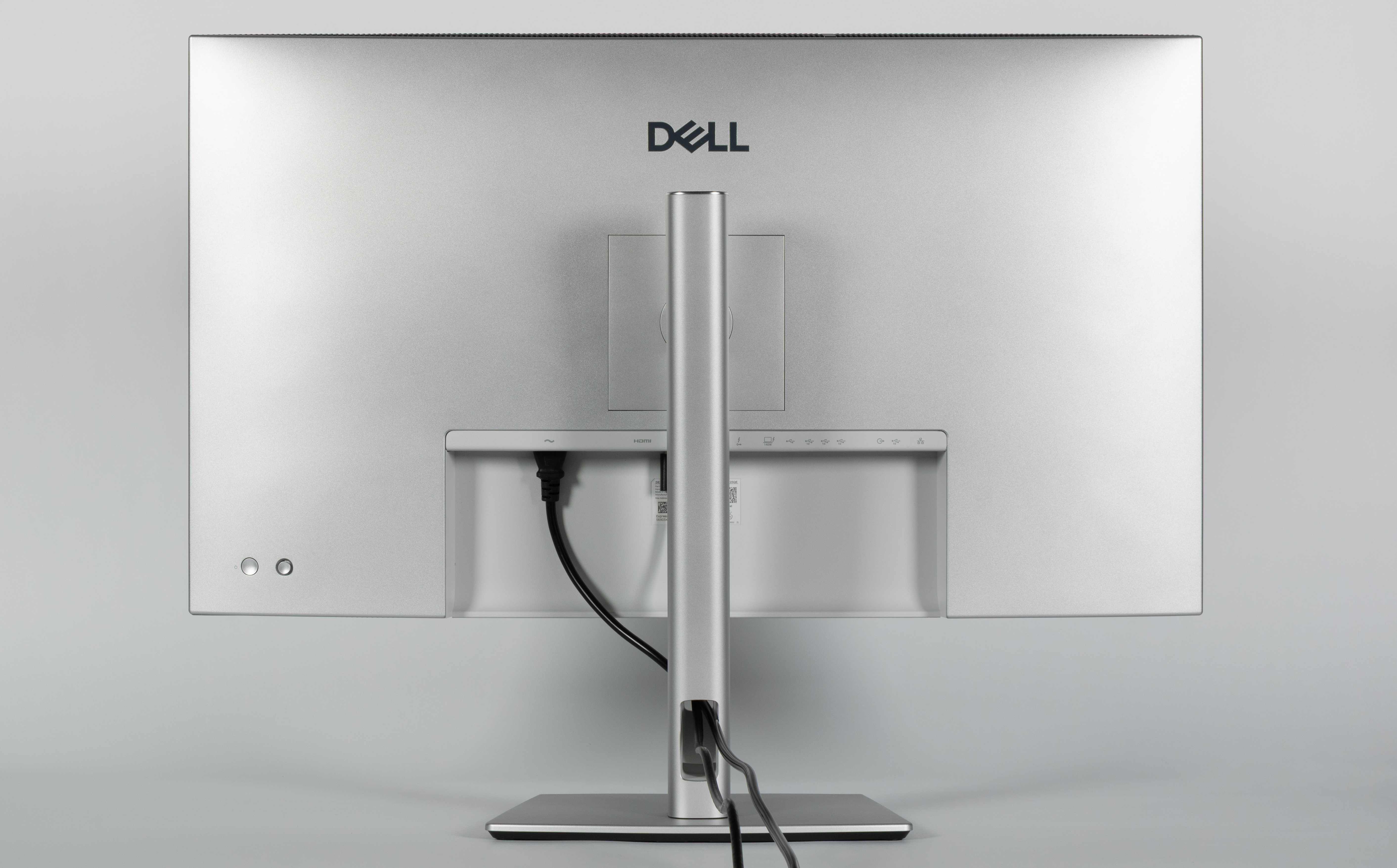 Подключать кабели к этим разъемам удобнее при перевороте экрана в портретную ориентацию. Кабели, идущие от этих разъемов, можно пропустить через отверстие в стойке подставки — так сзади монитор выглядит аккуратнее.