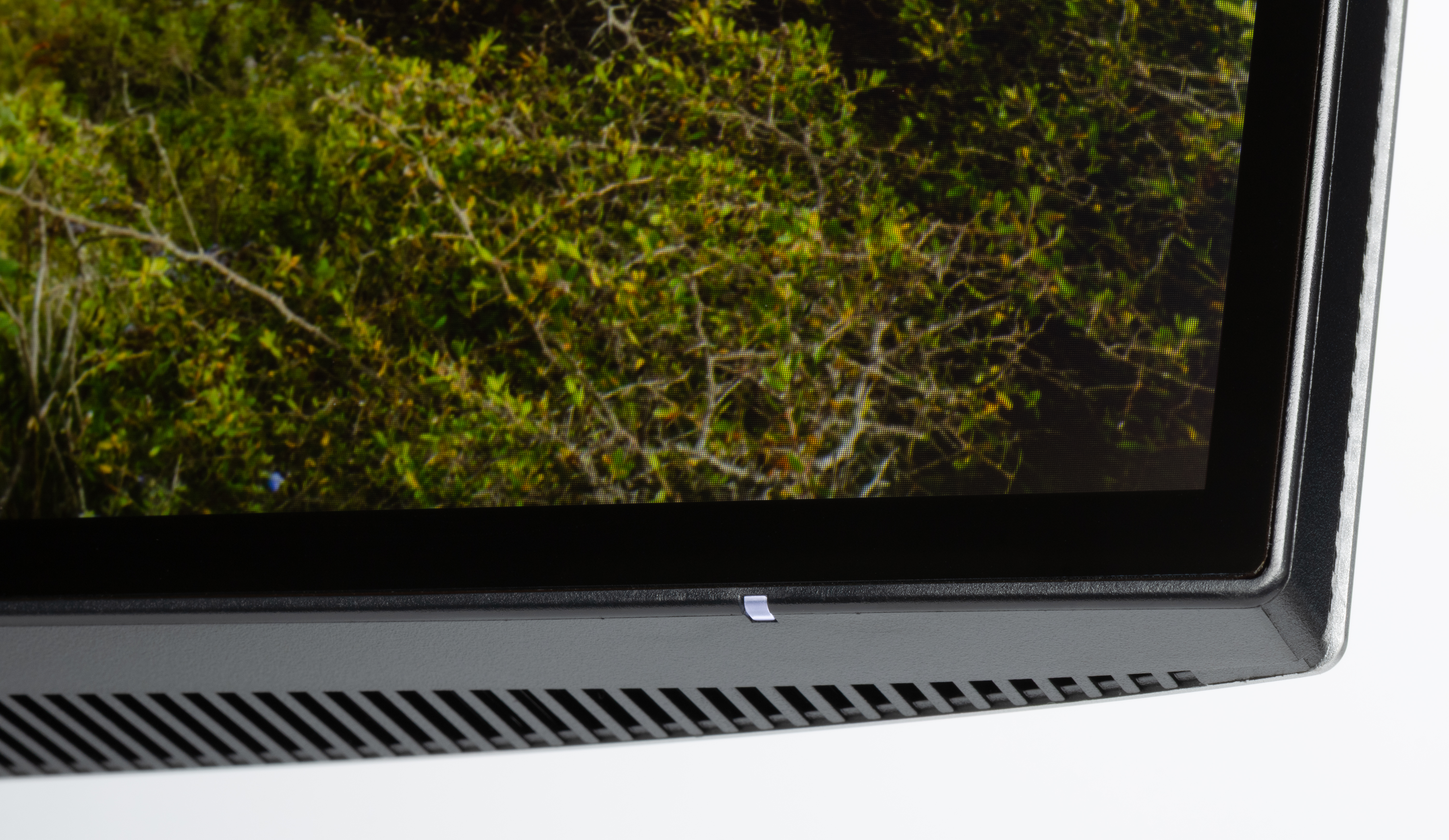Многочисленные вентиляционные решетки на торце ниши с разъемами и по периметру блока экрана способствуют охлаждению внутренностей монитора.