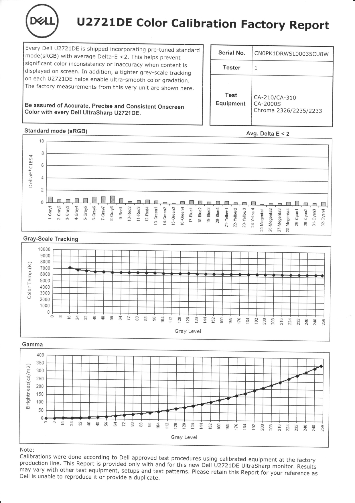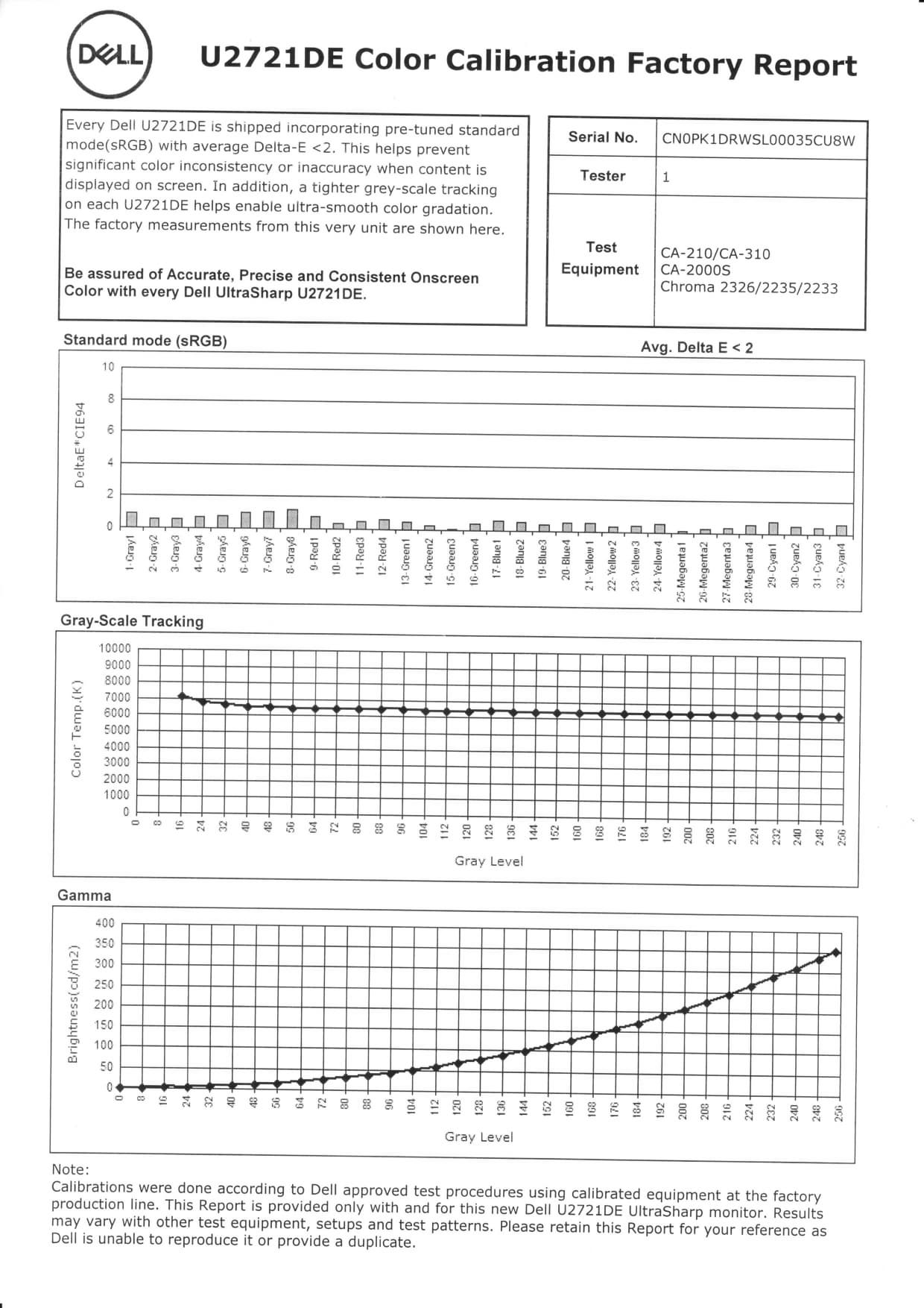 Производитель заявляет, что монитор проходит заводскую калибровку, и в доказательство прилагает соответствующий отчет: