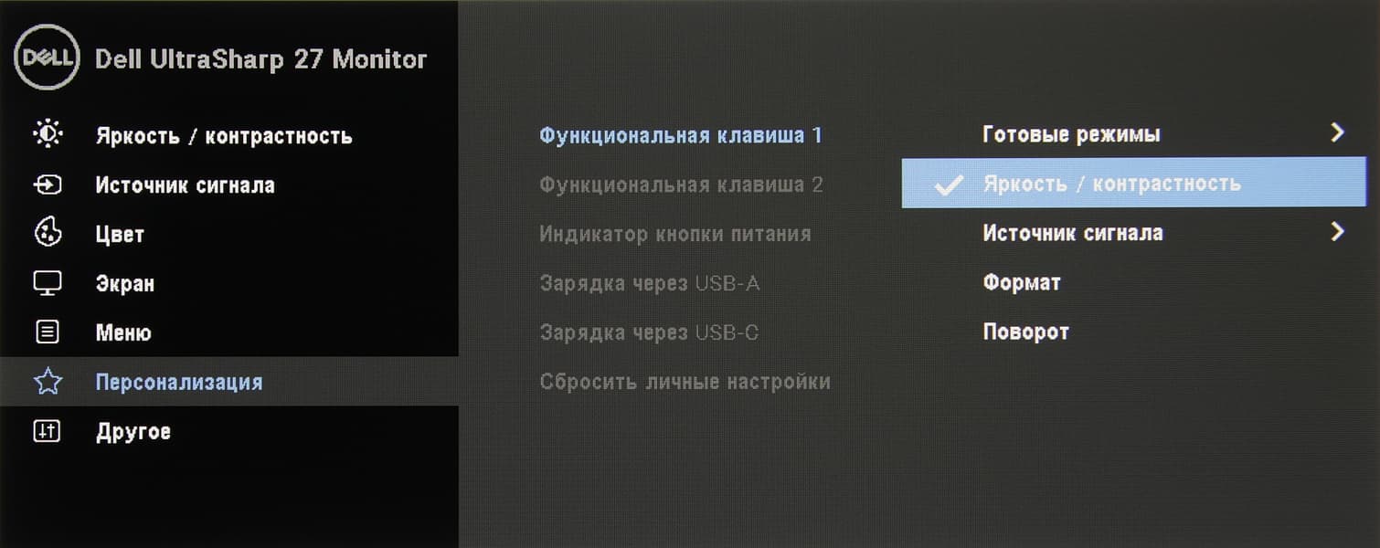 Представление об оснащенности интерфейсами дает таблица с характеристиками в начале статьи. Монитор имеет три цифровых входа, поддерживающих прием видеосигнала: HDMI и DisplayPort в полноразмерном варианте и USB 3.1 в виде разъема USB типа C. Есть полноразмерный выход DisplayPort, что позволяет к данному монитору (принимающему сигнал 2560×1440 при 60 Гц по DisplayPort или по USB типа C) последовательно подключить еще одно устройство отображения с разрешением 2560×1440 при 60 Гц, если видеокарта поддерживает DisplayPort Multi-Stream Transport (MST). Видеовходы способны также принимать цифровые аудиосигналы (только PCM стерео), которые выводятся после преобразования в аналоговый вид через гнездо миниджек 3,5 мм. К этому гнезду можно подключить внешнюю активную акустическую систему (производитель монитора предлагает использовать свою фирменную). Формально подключение наушников не поддерживается, но мы попробовали. Мощности выхода хватило, чтобы в 32-омных наушниках с чувствительностью 92 дБ громкость была достаточной и даже с небольшим запасом. Качество звука в наушниках хорошее — звук чистый, воспроизводится широкий диапазон частот, в паузах шума не слышно. Единственный недостаток — при таком подключении громкость для наушников не регулируется, но цифровую регулировку громкости на источнике никто не отменял. Интегрированные в монитор четырехпортовый USB-концентратор и проводной сетевой интерфейс могут быть доступны только через подключение к порту USB типа C и в случае ввода видеосигнала через этот интерфейс. Порты USB, рядом с которыми есть значок «батарейки», поддерживают стандарт быстрой зарядки BC 1.2. В меню можно выбрать, следует ли подавать питание на USB-выходы, когда монитор находится в режиме ожидания. Порт USB типа C поддерживает подачу питания на подключенный к нему ноутбук. В меню также можно выбрать, нужно ли заряжать ноутбук, когда сам монитор выключен.