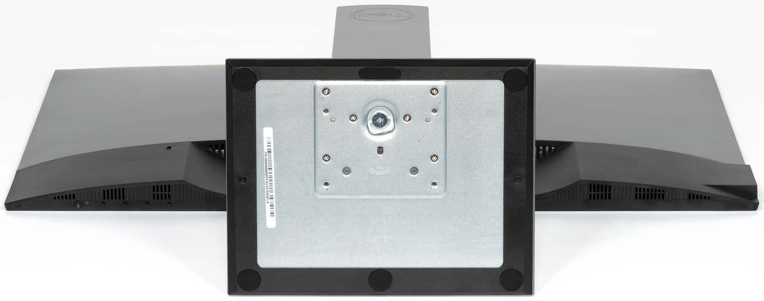 Подставка на блок экрана крепится на защелках одним движением, а отсоединяется также просто, при удерживании кнопки фиксатора. На всякий случай фиксатор стойки можно заблокировать, закрутив винт в резьбовое отверстие под кнопкой высвобождения защелок. Подставку можно отсоединить (или не подсоединять изначально) и закрепить блок экрана на VESA-совместимом кронштейне с отверстиями по углам квадрата со стороной 100 мм.