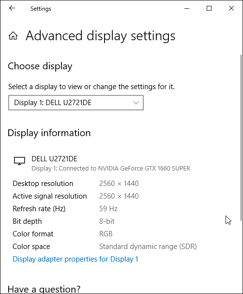 При подключении к компьютеру по всем трем входам поддерживалось разрешение до 2560×1440 при 60 Гц кадровой частоты. При таком разрешении и частоте обновления поддерживаются 8 бит на цвет (кодирование RGB).