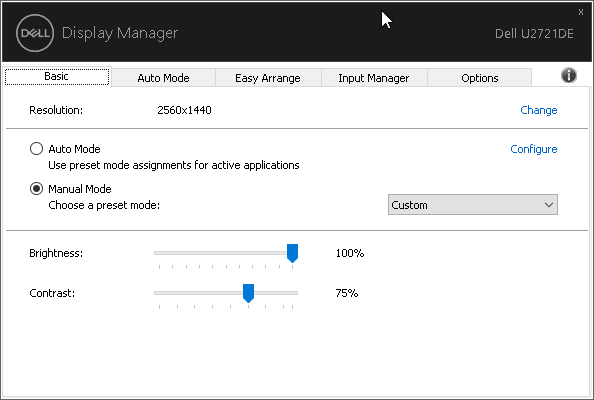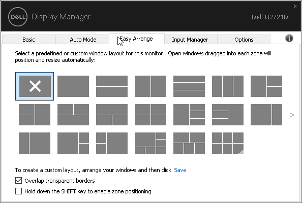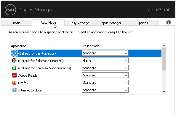 ПО Dell Display Manager позволяет с компьютера изменять некоторые настройки монитора, также есть возможность включить автоматический выбор профиля в зависимости от активного приложения. Кроме того, в Dell Display Manager есть функция, упрощающая распределение окон на рабочем столе. Для данного разрешения это уже весьма актуально.