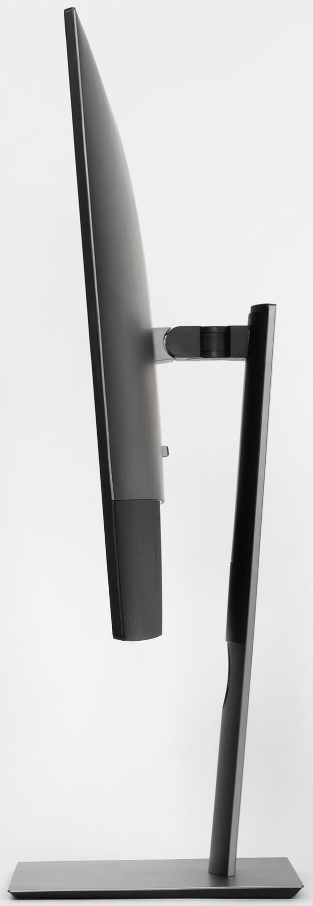 Стойка имеет фиксированную высоту, при этом подпираемый пружиной механизм с рельсовым стальным шариковым подшипником обеспечивает вертикальное перемещение шарнира, на который крепится блок экрана. Штатная подставка позволяет немного наклонить блок экрана вперед, отклонить назад, приподнять-опустить, повернуть вправо-влево и перевернуть в портретную ориентацию по и против часовой стрелки.