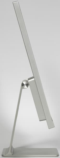Панели монитора изготовлены из пластика с матовой серебристой поверхностью. Подставка выполнена из алюминиевого сплава. Ее поверхность анодирована и также имеет матовое серебристое покрытие. Внешняя поверхность матрицы черная, полуматовая (зеркальность хорошо выражена), жесткая. Экран выглядит как монолитная поверхность, ограниченная снизу относительно узкой планкой, а сверху и по бокам — узкой окантовкой. Выведя изображение на экран, можно увидеть, что на самом деле между внешними границами экрана и собственно областью отображения есть неширокие поля (по 6 мм до окантовки сверху и по бокам и порядка 1,5 мм до планки снизу).